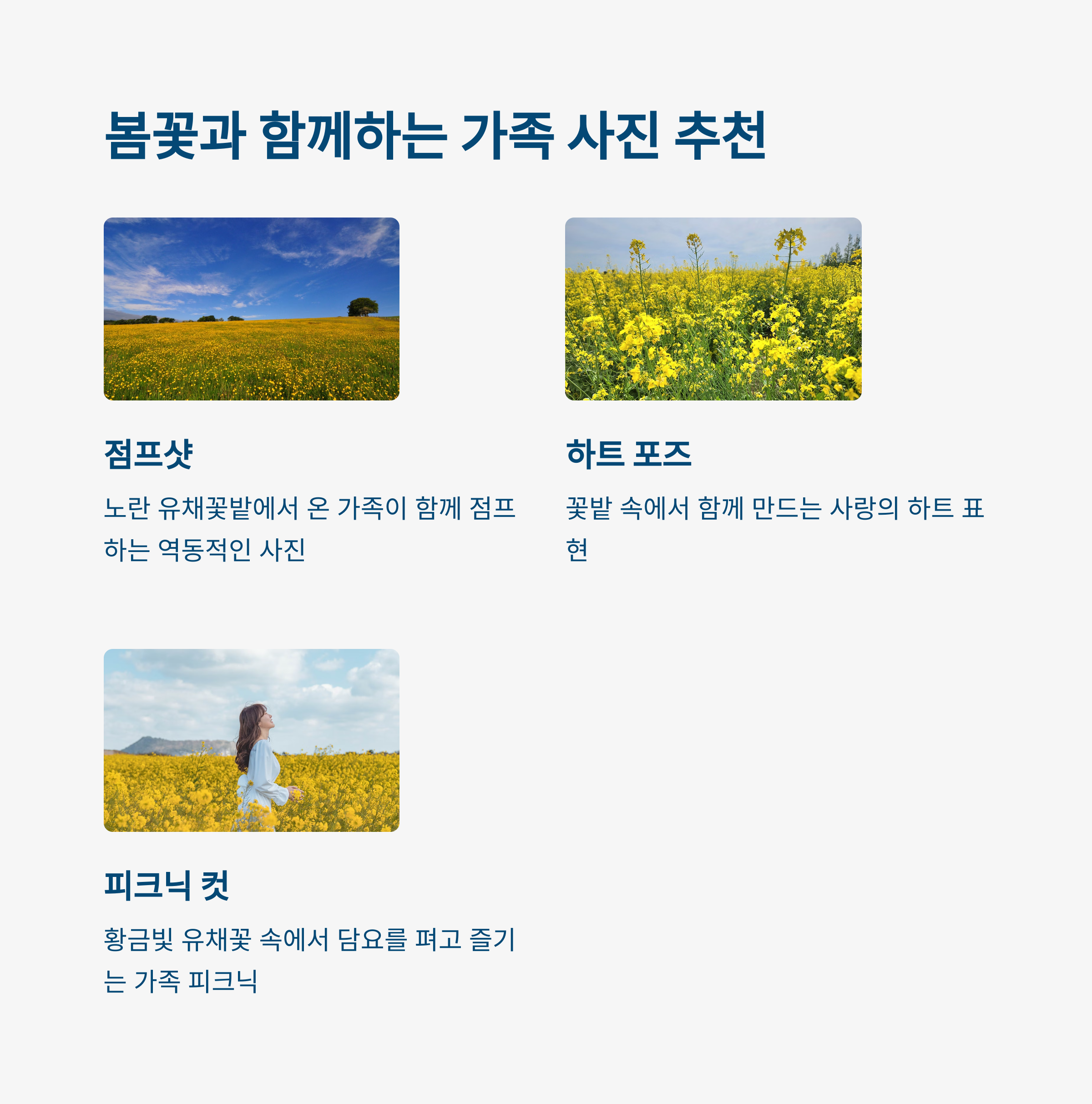 노란 유채꽃과 하얀 메밀꽃이 가득한 봄날, 가족과 함께하는 소풍은 그 어떤 여행보다 특별합니다. 사진으로 남기기에도, 자연을 느끼기에도 완벽한 꽃놀이 명소들로 이번 주말을 채워보세요. 계절이 주는 선물 같은 풍경 속에서 소중한 사람들과 따뜻한 기억을 만들어가시길 바랍니다.