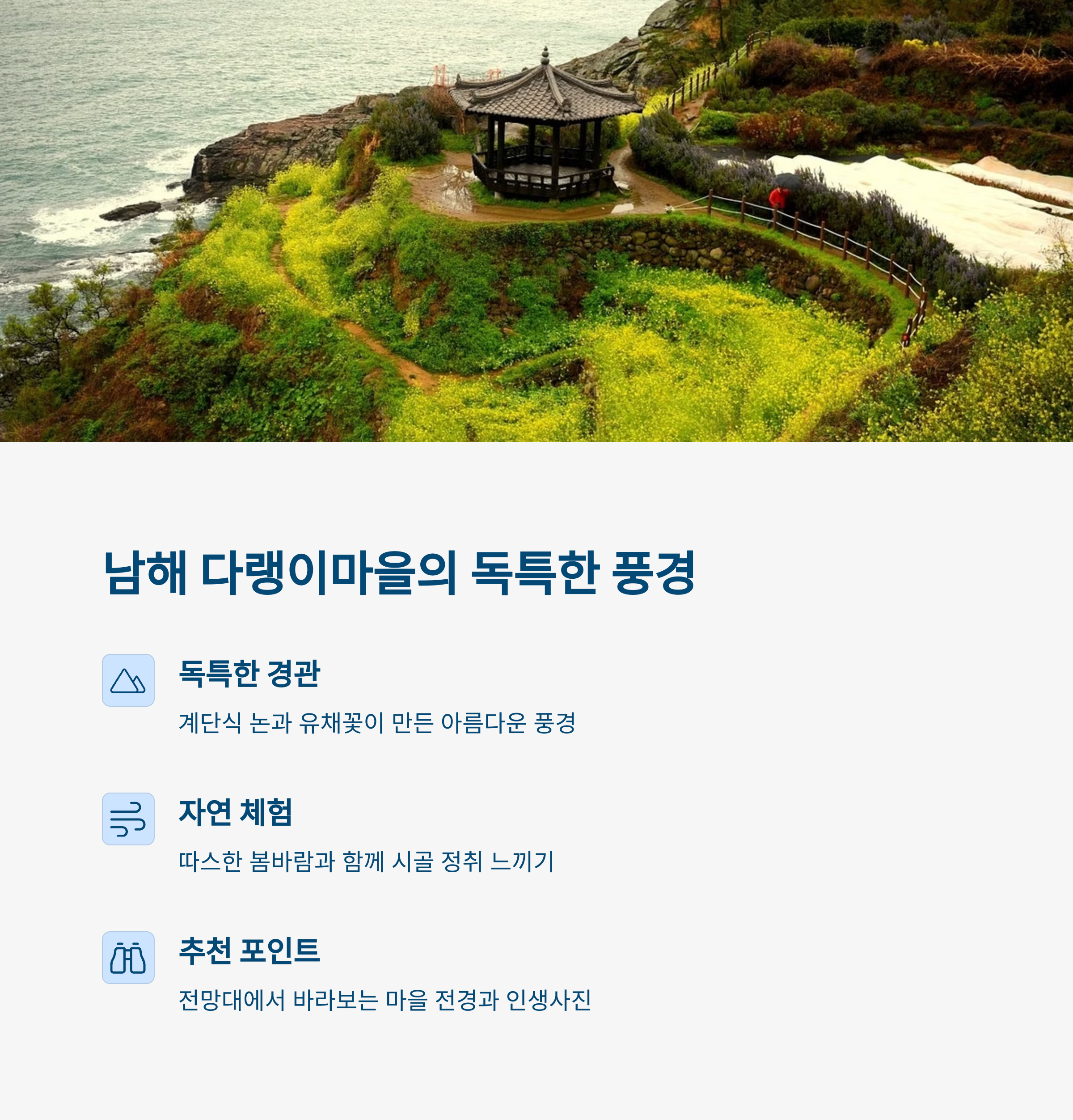 메밀꽃은 봄보다는 가을이 절정이지만, 남해 다랭이마을 등에서는 봄에도 일부 테라스형 밭에서 볼 수 있어요. 봄 메밀밭은 희귀하니 일정 잘 확인하고 방문해보세요.