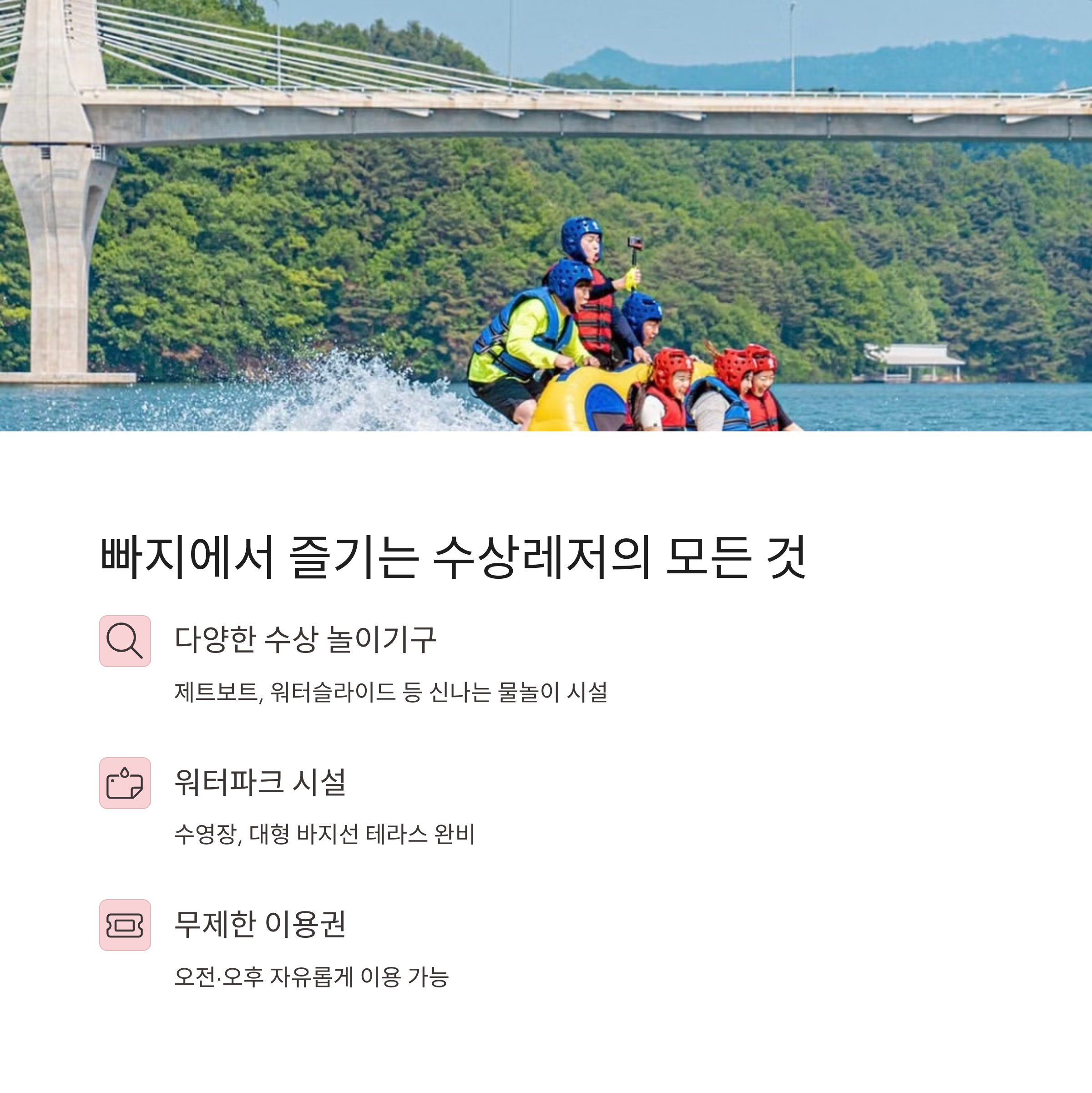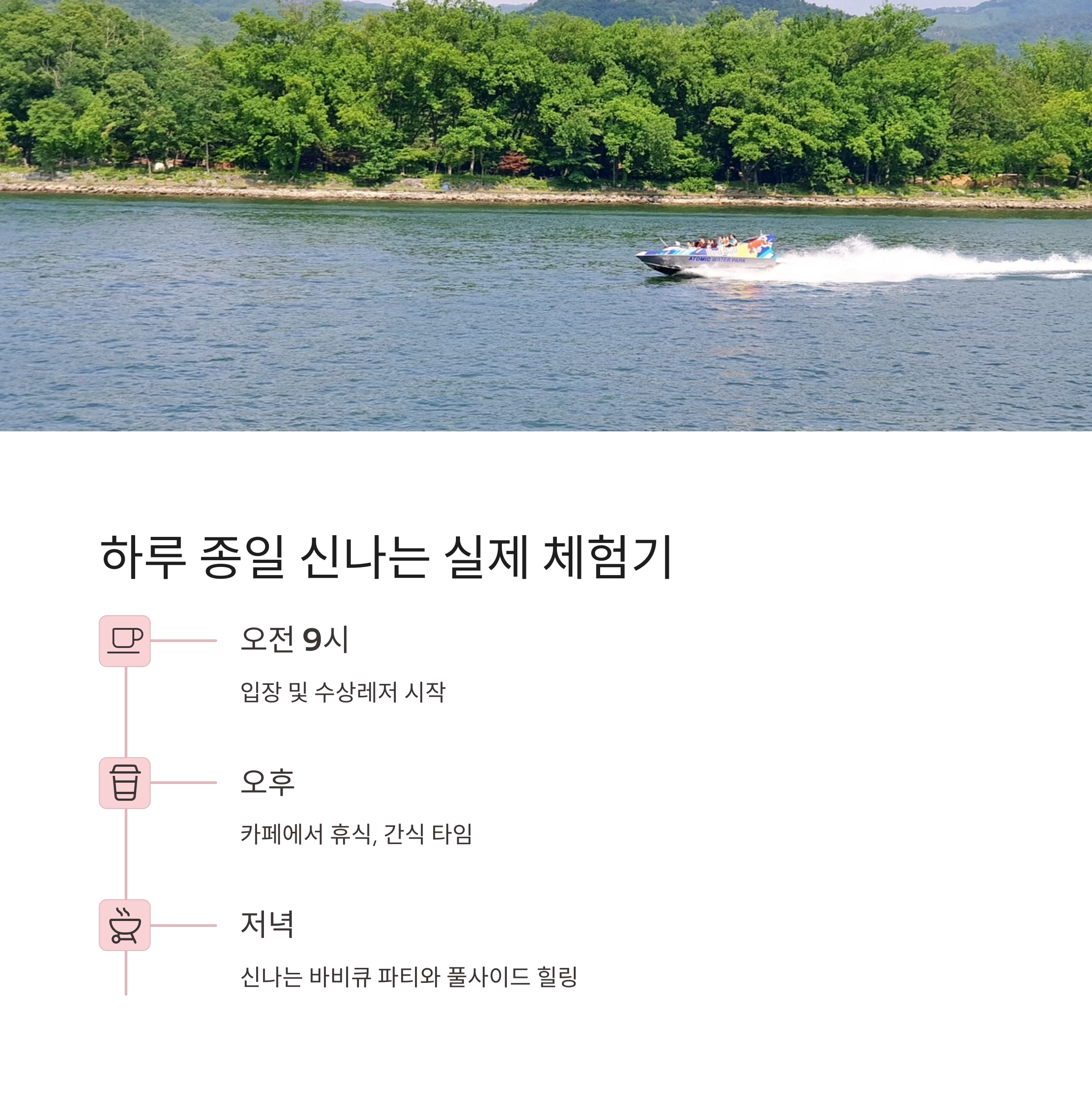 | 빠지 패키지 | 무제한 수상놀이와 숙박, 바비큐 포함 구성 |