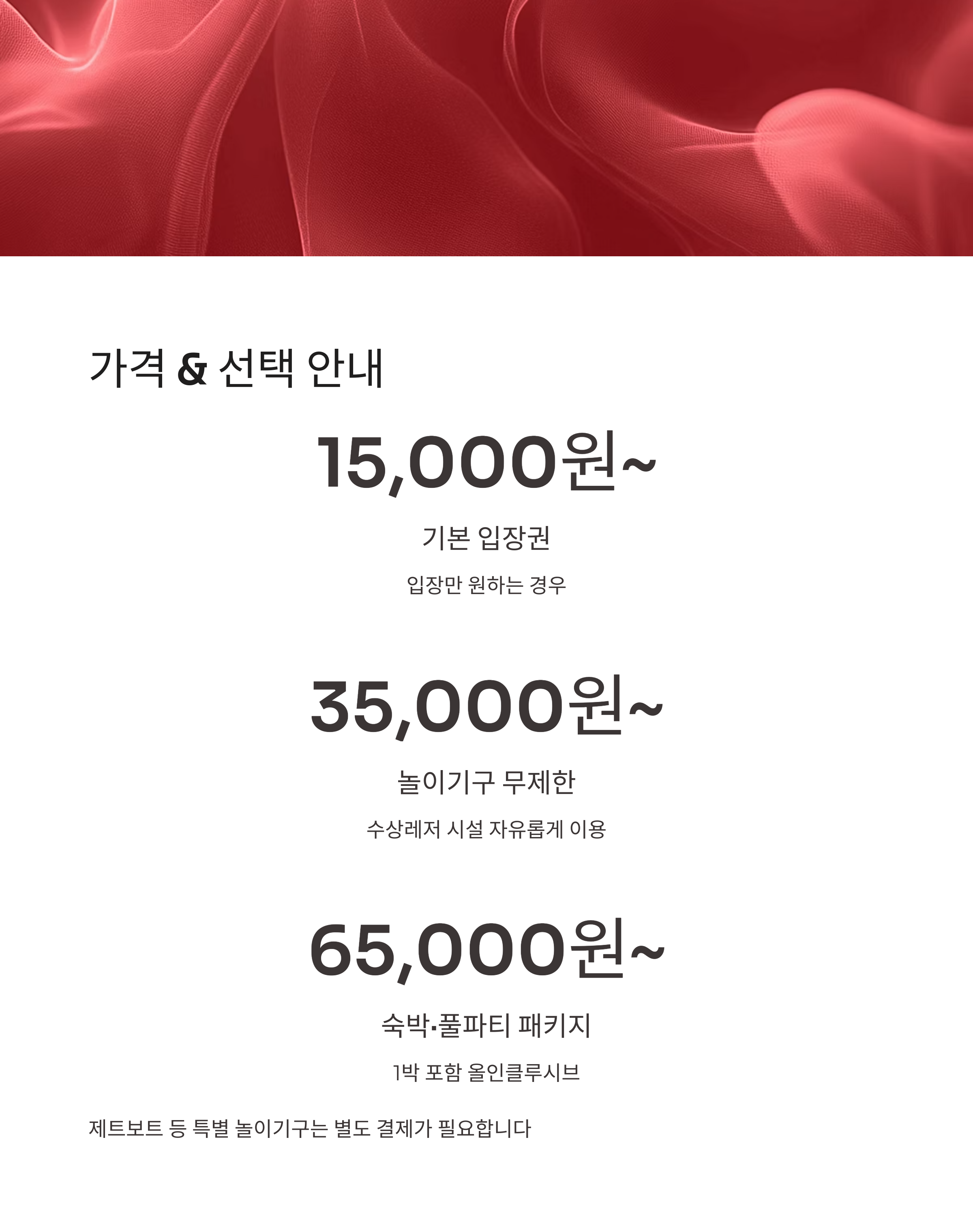 빠지 패키지 무제한 수상놀이와 숙박, 바비큐 포함 구성