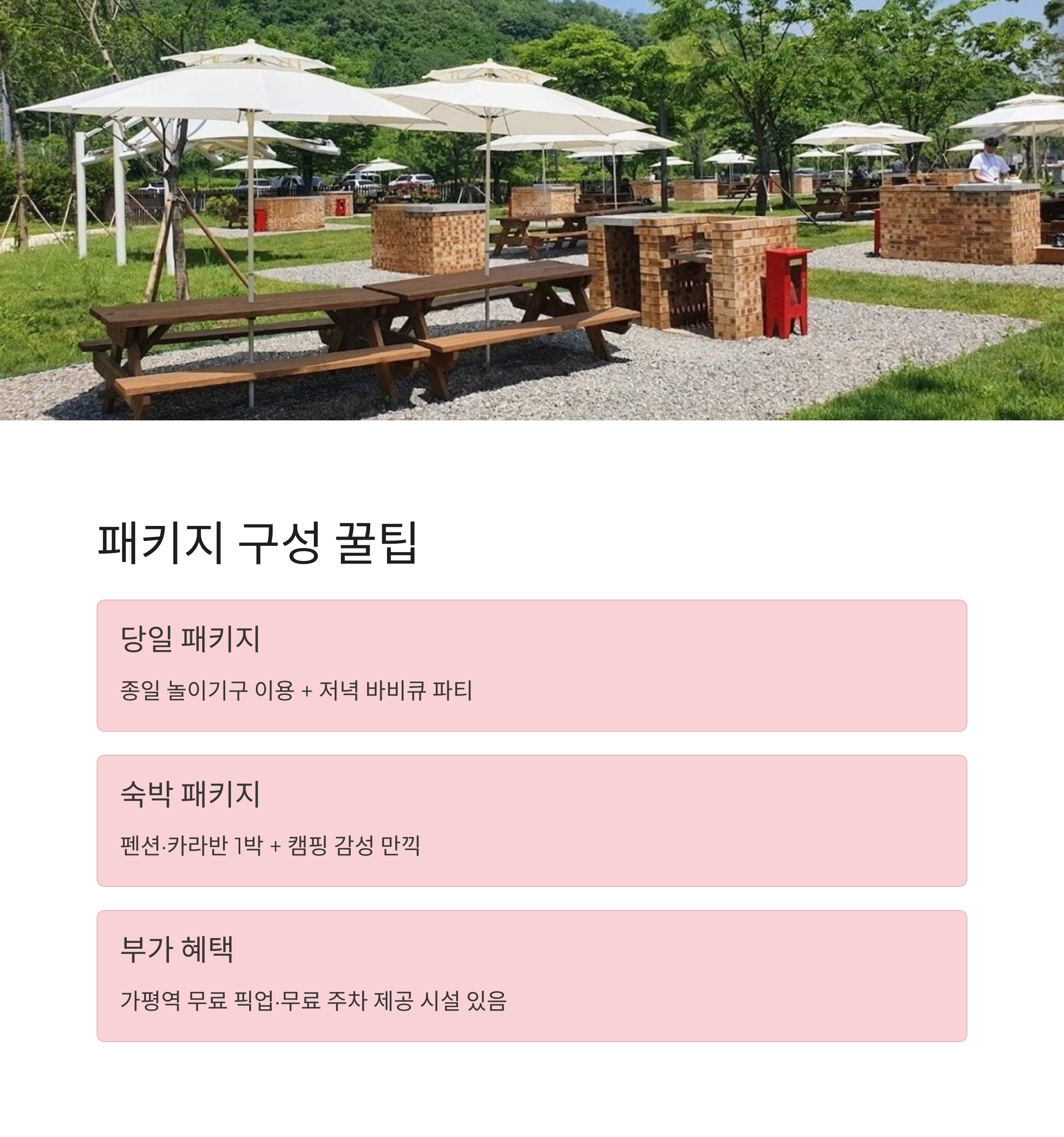 가평 빠지 패키지는 단순한 물놀이 장소를 넘어 여름철 특별한 하루를 계획할 수 있는 종합 휴식 공간입니다. 친구들과의 추억 여행, 가족과의 바캉스, 연인과의 힐링 데이트 등 어떤 일정에도 어울리는 구성으로 많은 사랑을 받고 있습니다. 물놀이의 시원함과 바비큐의 즐거움, 숙소에서의 감성적인 캠핑까지 더해져 도심에서는 느낄 수 없는 자유로운 분위기를 누릴 수 있습니다. 다양한 테마와 패키지 옵션이 있어 목적에 따라 맞춤형 여행을 구성할 수 있는 것도 장점입니다. 올여름, 색다른 경험을 찾는다면 가평 빠지 패키지를 선택해보세요.
