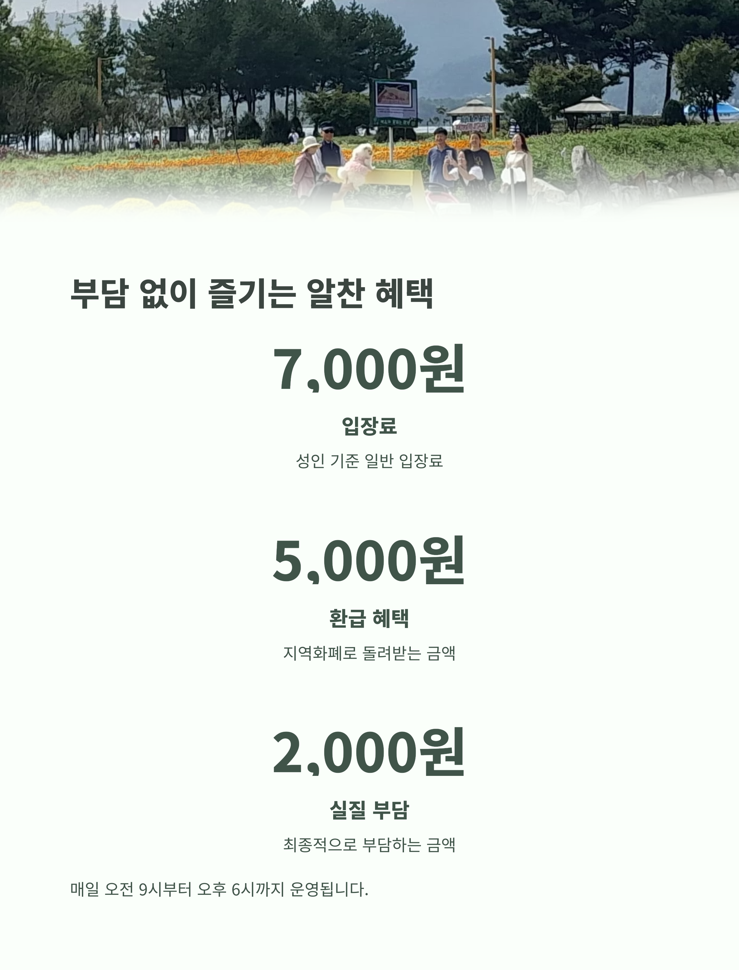 | 입장 혜택 | 입장료 7,000원 중 5,000원은 지역화폐로 환급 |