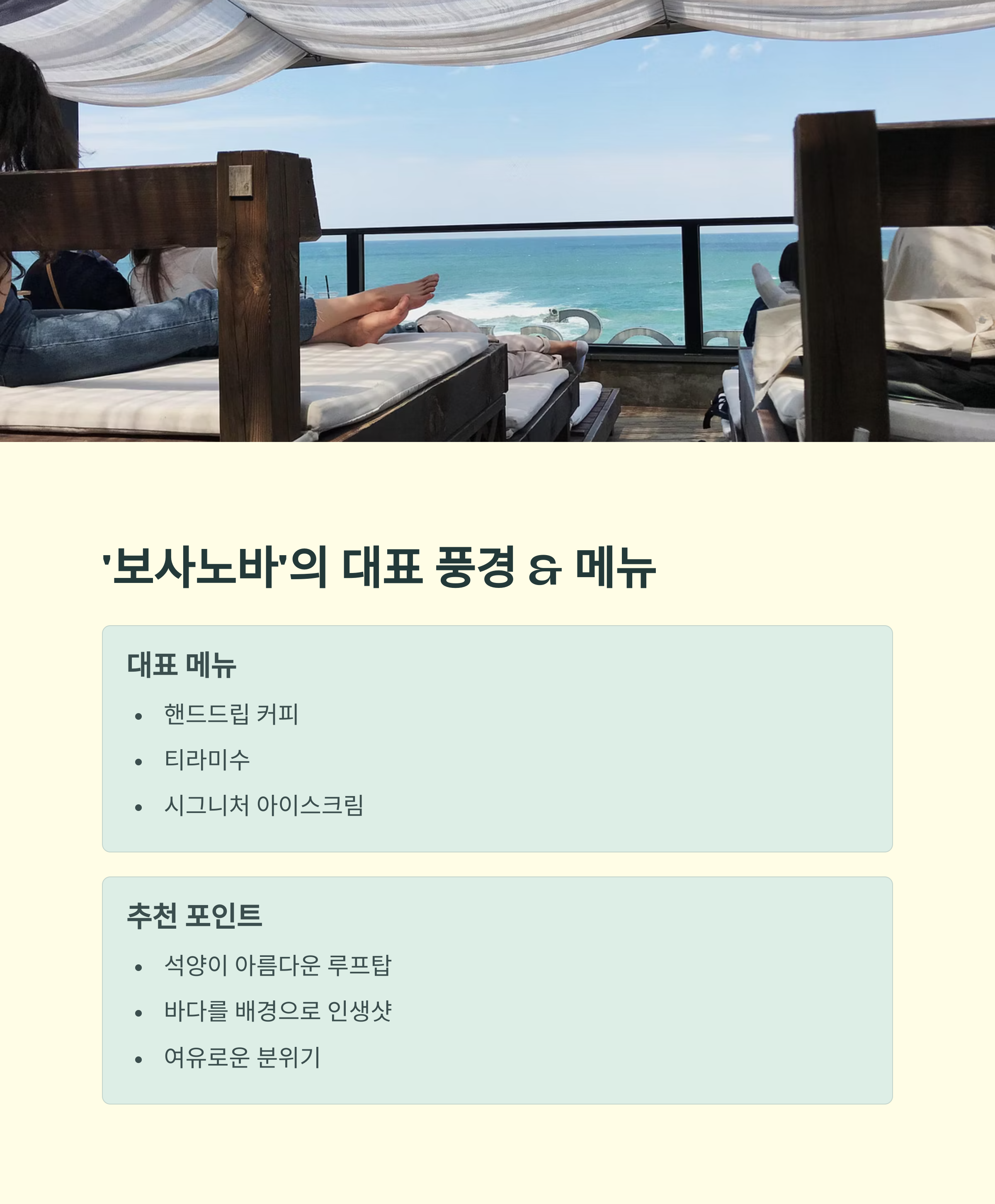 첫 번째 추천 카페는 보사노바 커피로스터스 안목점입니다. 해변 바로 앞에 위치한 오션뷰가 인상적이며, 실내 어디에서나 시원한 바다 풍경을 감상할 수 있어요. 직접 로스팅한 커피의 깊은 풍미와 매일 만들어지는 홈메이드 디저트의 조합은 감성을 자극하는 여행의 마무리를 완성해줍니다. 편안한 좌석 구성과 넓은 창 덕분에 혼자 여유를 즐기기에도, 친구와 수다 떨기에도 제격인 곳입니다.