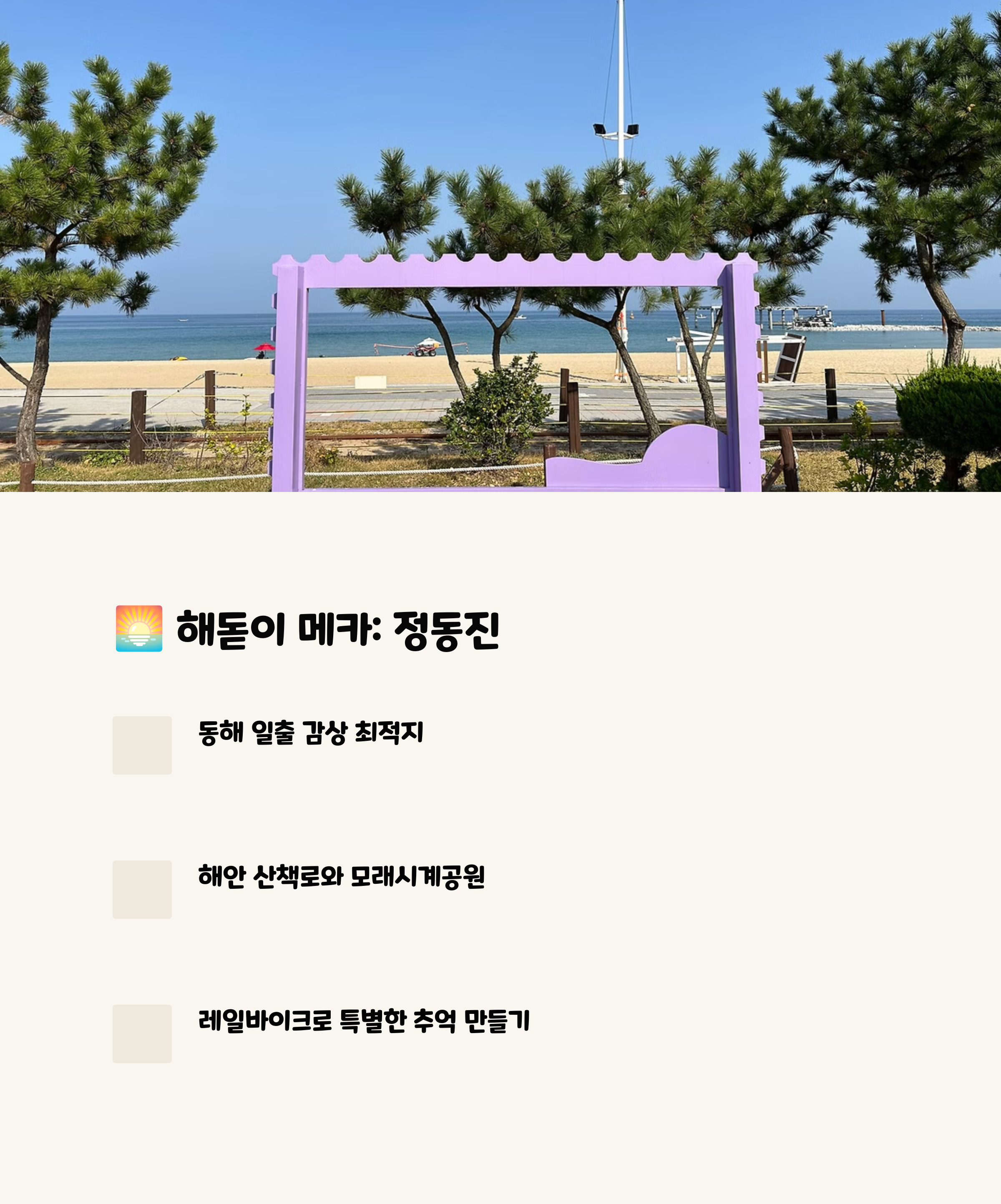 숨겨진 맛집, 감성 카페, 특이한 볼거리 등 나만 아는 강릉 여행 포인트를 댓글로 알려주세요! 함께 강릉 여행을 더 풍성하게 만들어봐요.