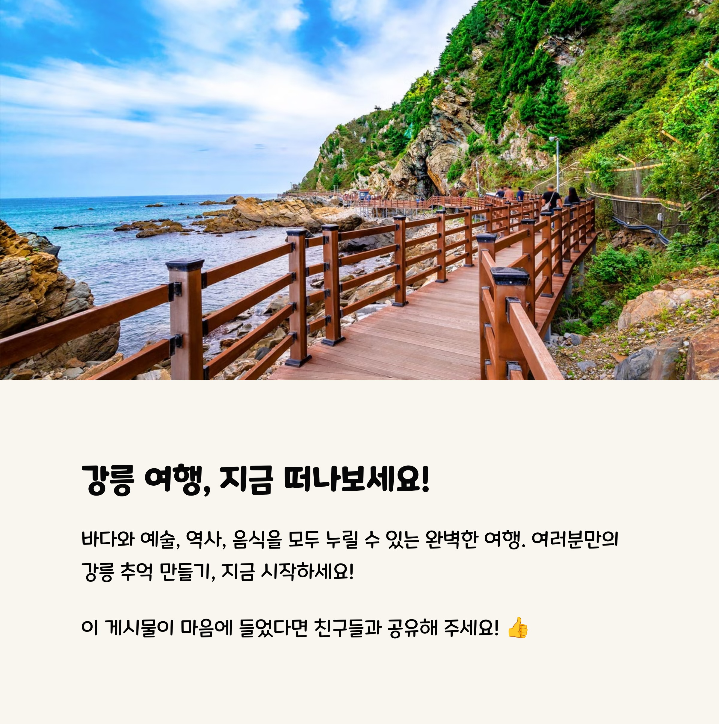 숨겨진 맛집, 감성 카페, 특이한 볼거리 등 나만 아는 강릉 여행 포인트를 댓글로 알려주세요! 함께 강릉 여행을 더 풍성하게 만들어봐요.