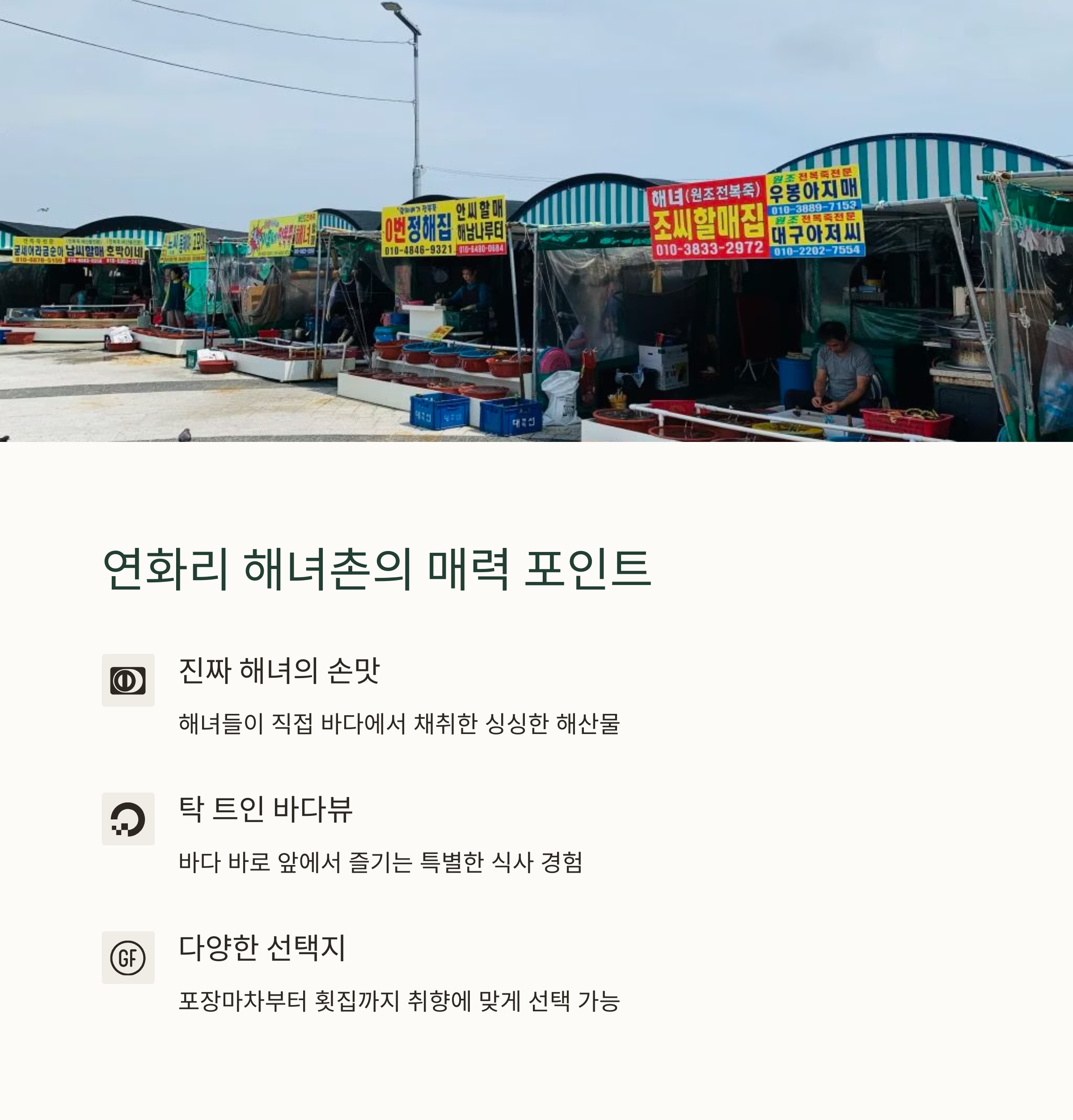 | 연화리 해녀촌 | 전복죽 맛집 | 해산물 포장마차 |