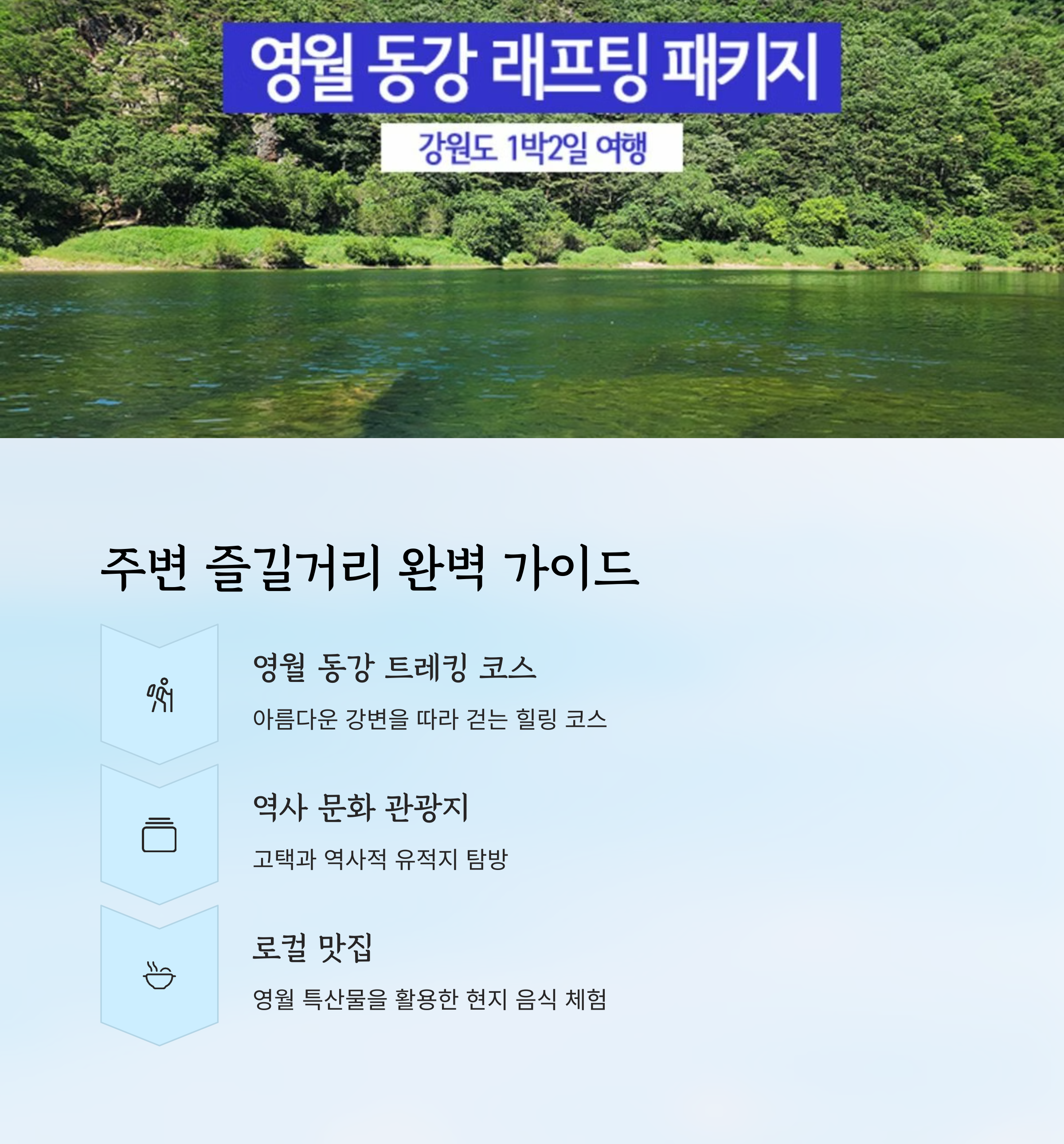 | 숙소 정보 | 체험 활동 | 추천 이유 |