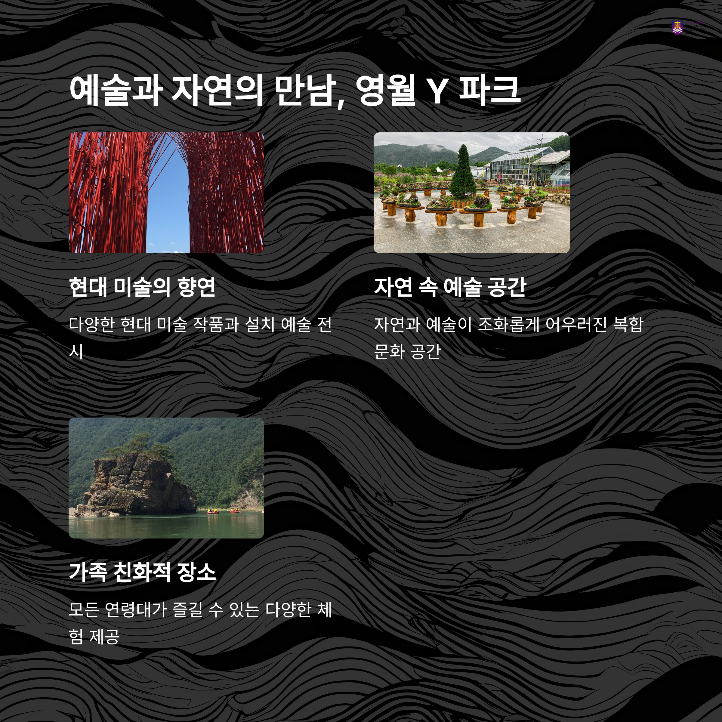 단종의 발자취가 남은 청령포부터, 예술 감성 가득한 Y 파크까지! 여러분만의 영월 여행 코스가 있다면 댓글로 공유해 주세요 :) 관광택시로도 꼭 가봐야 할 스팟을 함께 알려주시면 더 좋습니다.