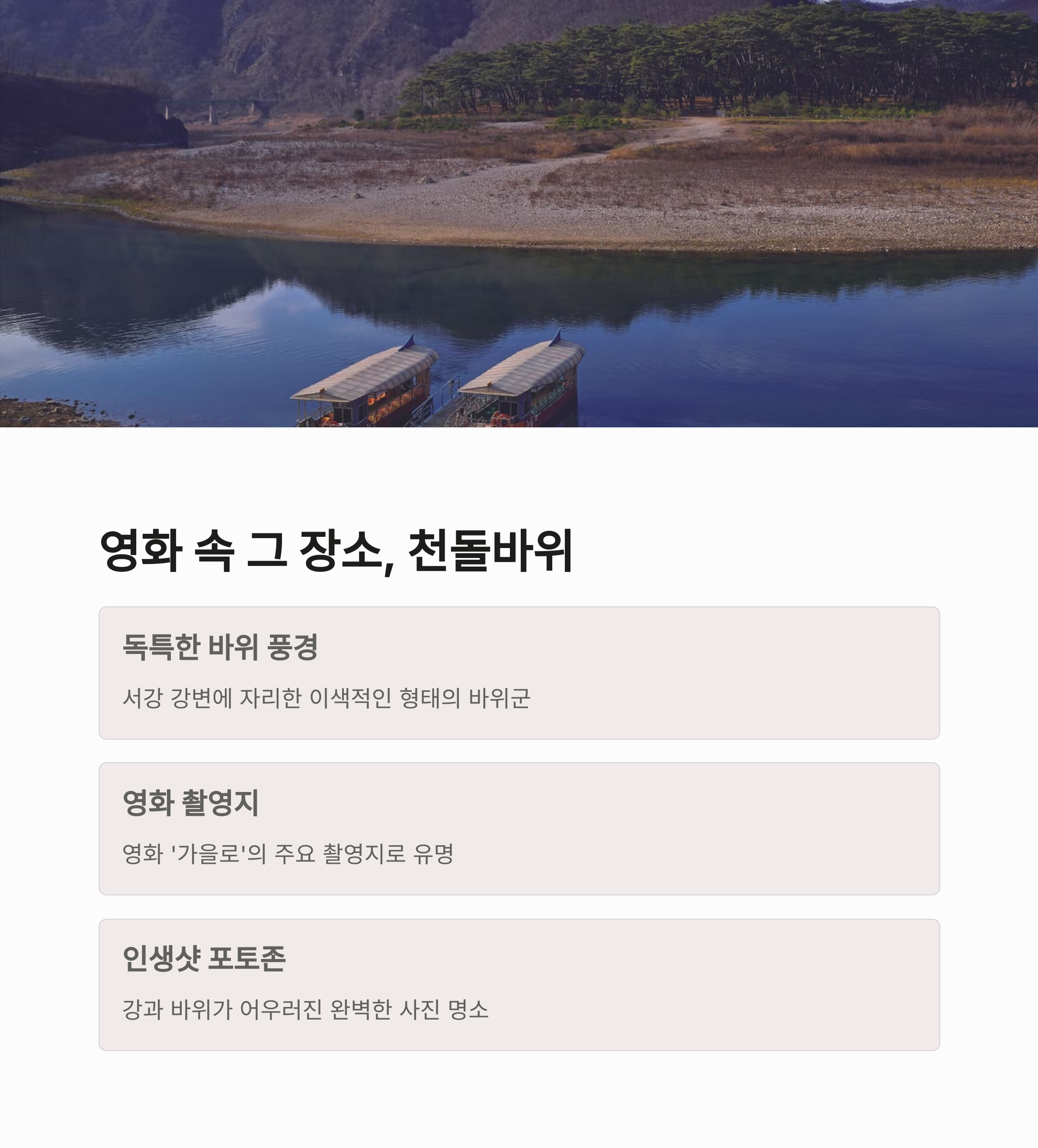 | 역사 여행 | 자연 명소 | 편의 정보 |