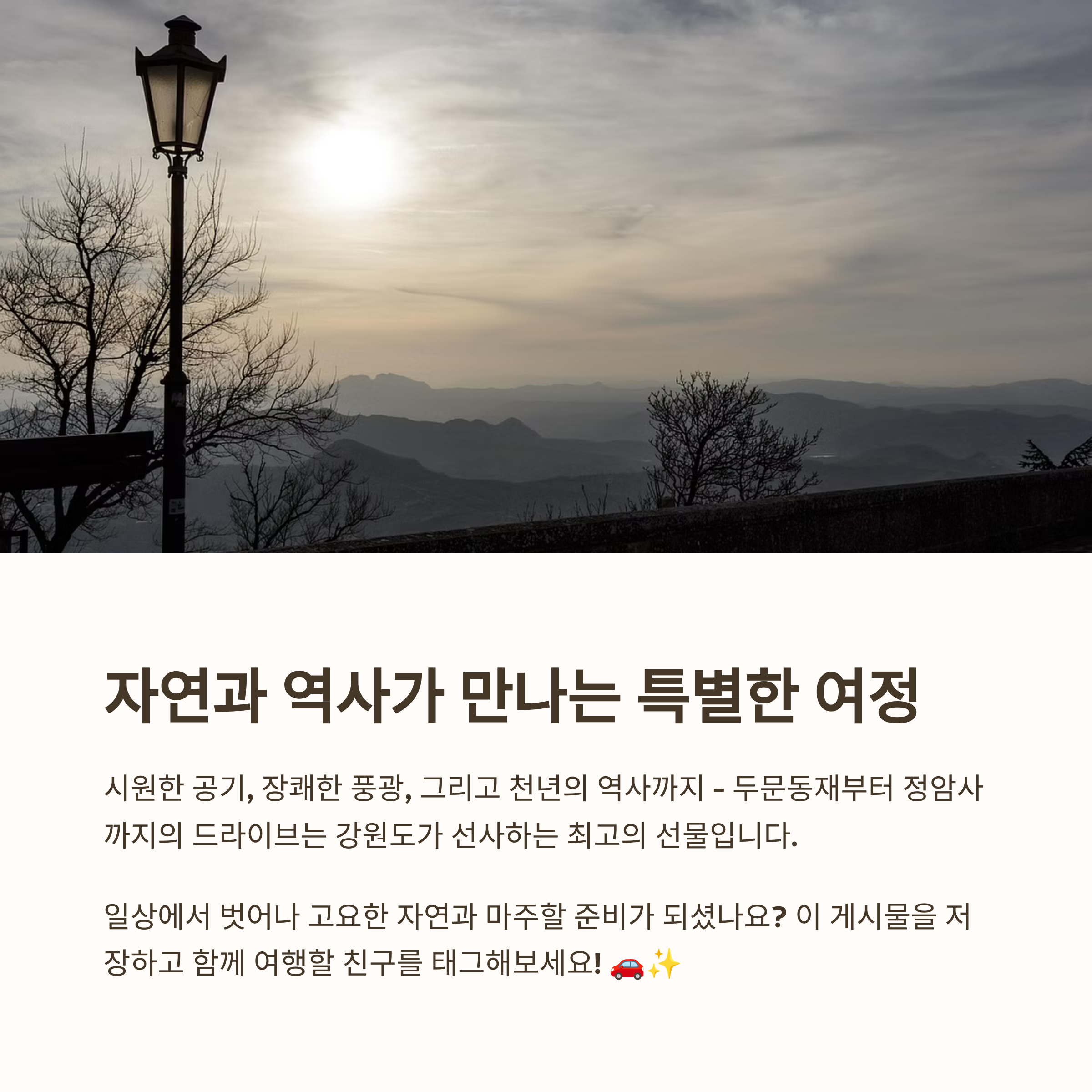 여러분이 다녀온 가장 기억에 남는 고원 드라이브 코스는 어디인가요? 또는 정선 여행에서 느낀 소중한 순간이 있다면 댓글로 함께 공유해주세요!