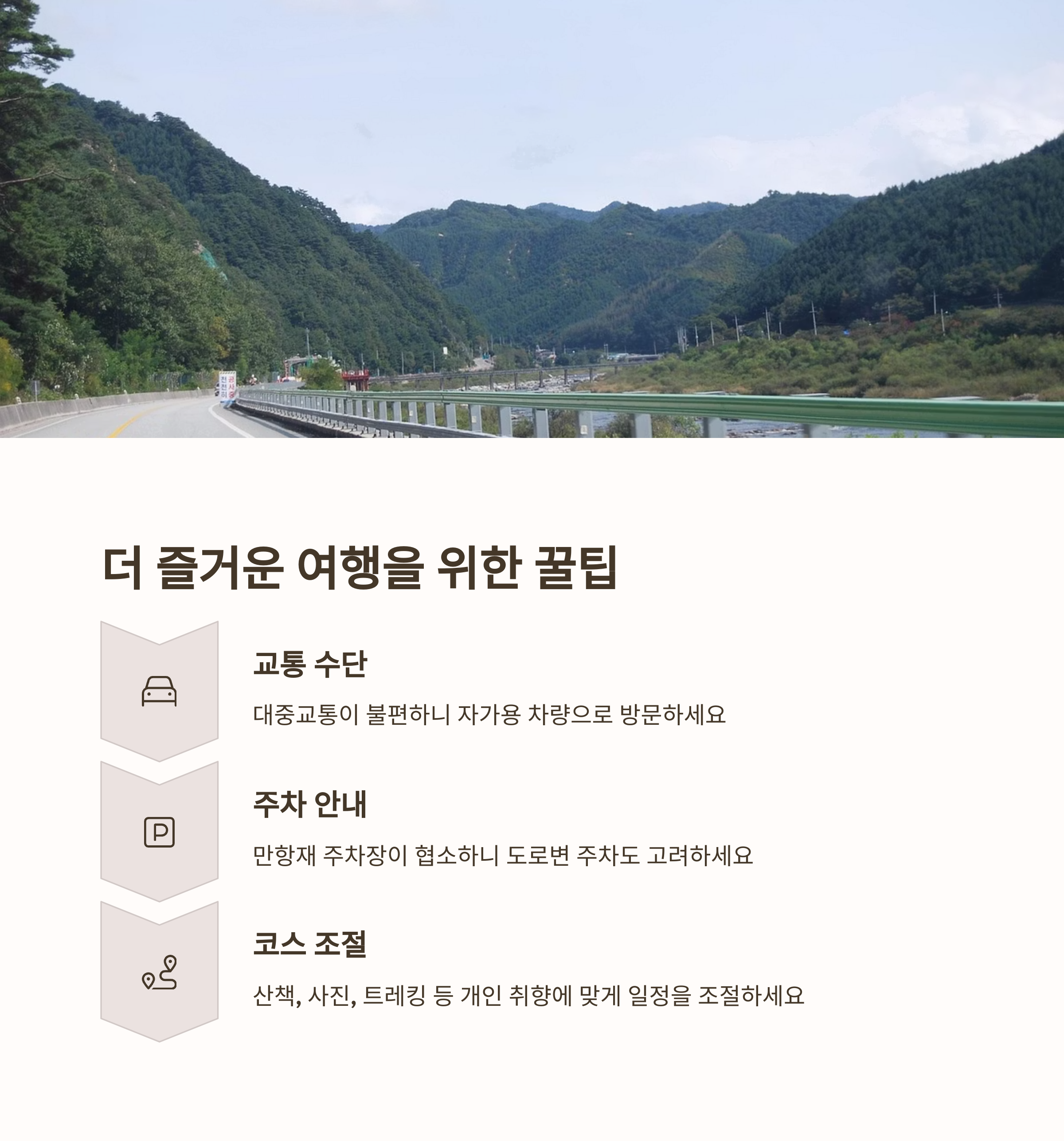 | 해발 1,268m 백두대간을 넘는 스카이로드 | 야생화, 안개, 계절마다 다른 자연 경관 | 역사와 자연이 어우러진 산중 사찰 명소 |