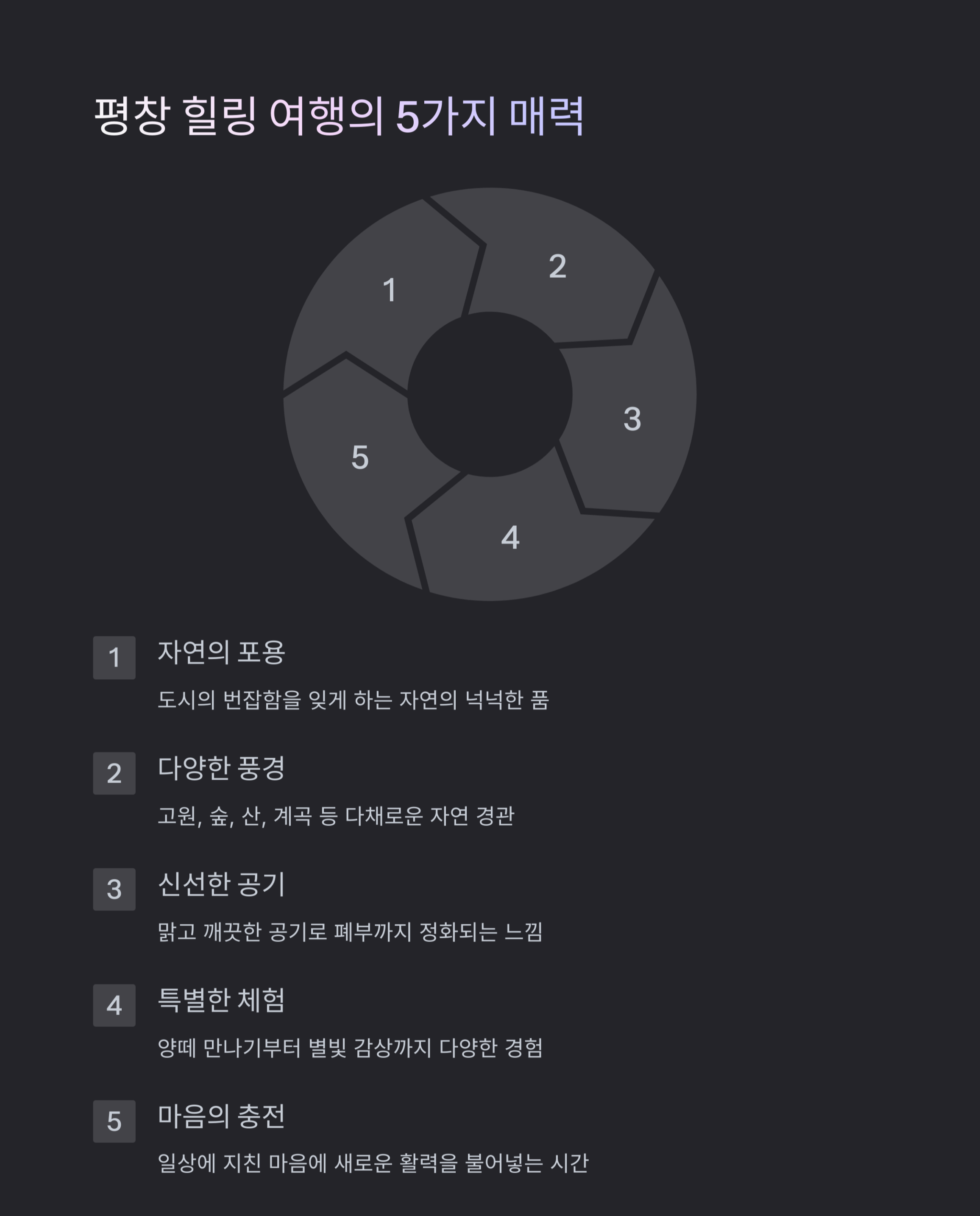 | 여행지 추천 | 강원도 평창에서 꼭 가봐야 할 힐링 명소 5곳을 소개합니다. |