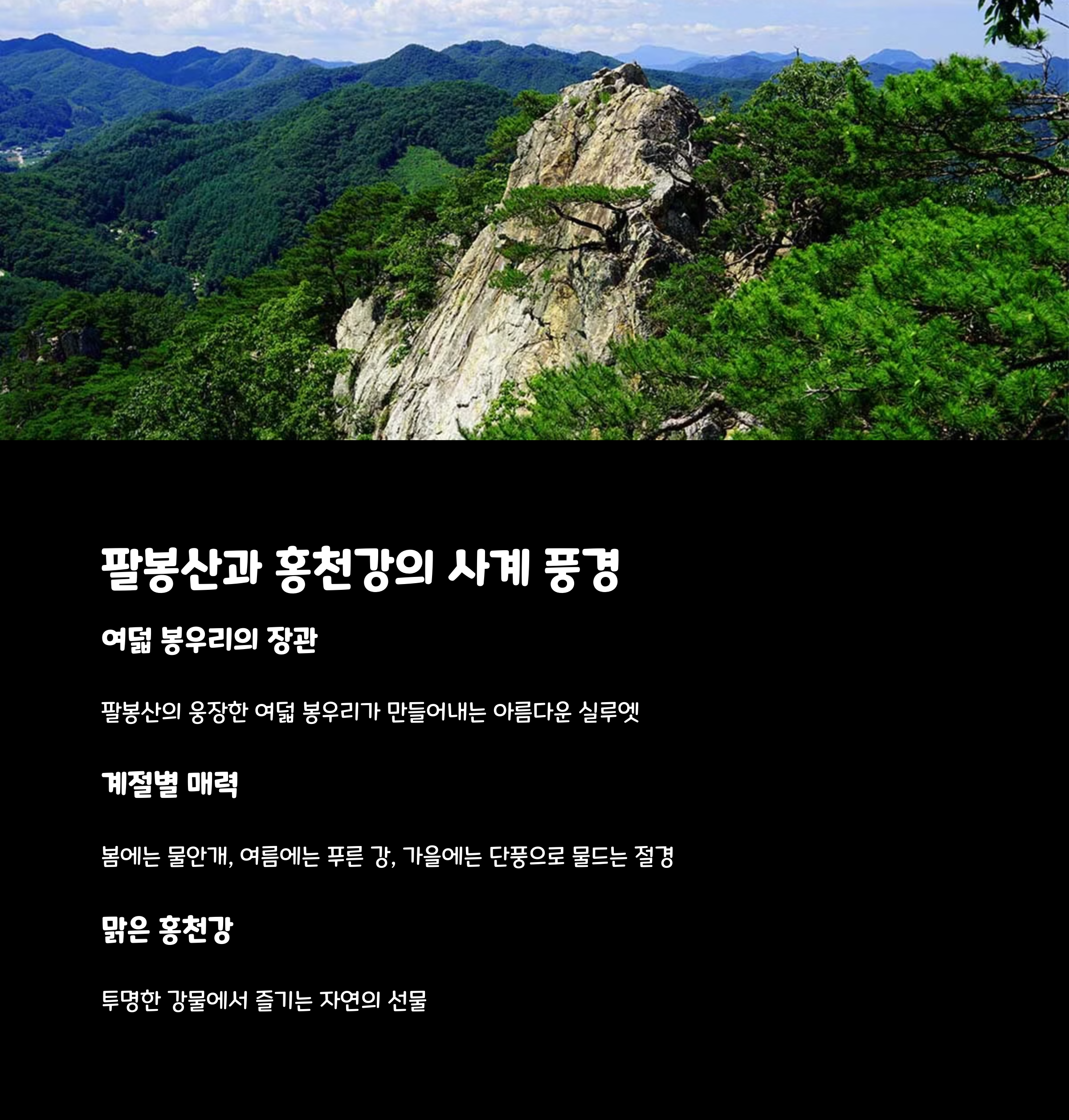 | 위치 정보 | 강원도 홍천군 서면 팔봉산로 인근 / 홍천강변 바로 앞 |