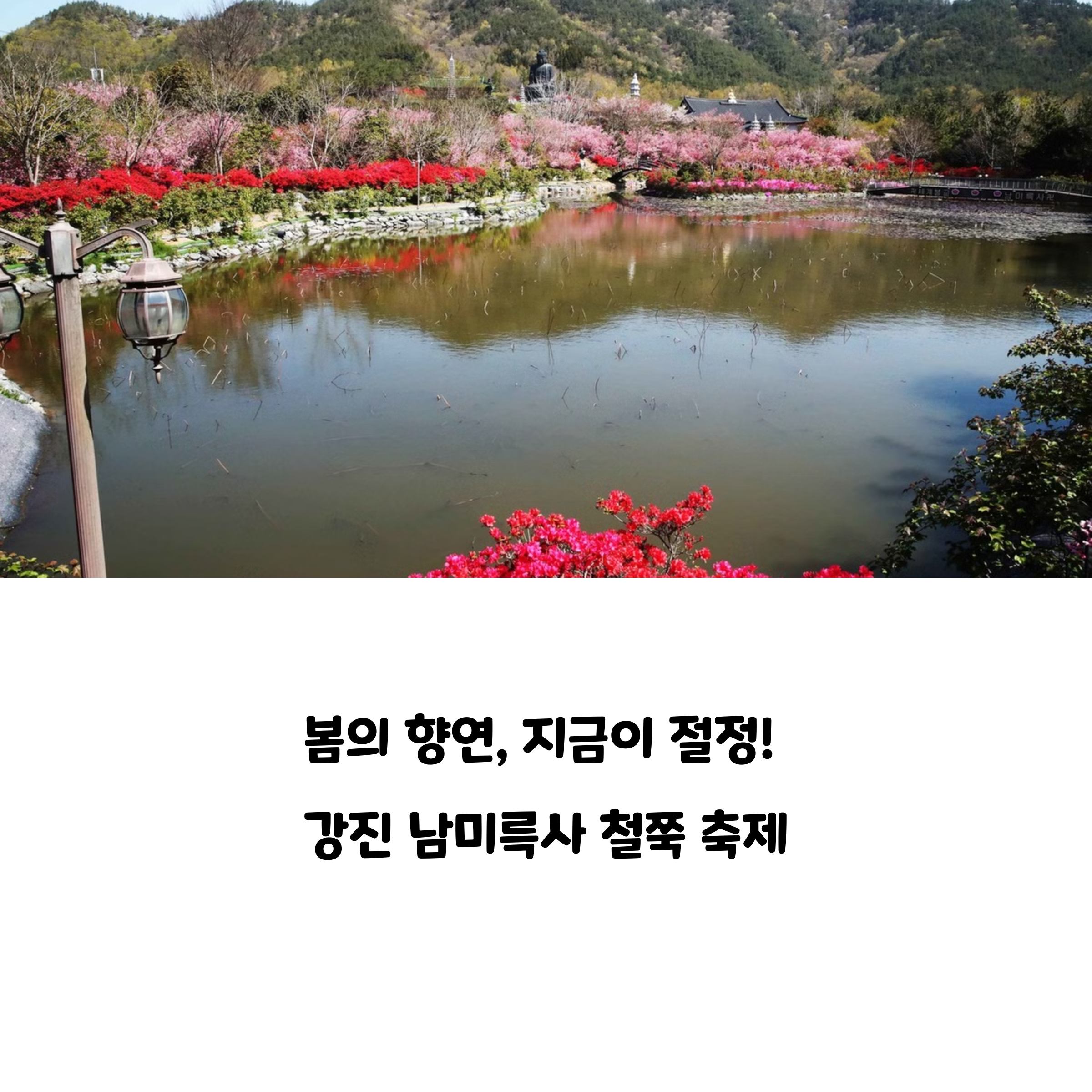 지금 이 시기, 가장 아름다운 철쭉을 만날 수 있는 곳, 바로 강진 남미륵사입니다. 전통 사찰의 고요함과 붉게 물든 철쭉이 어우러지는 풍경은 잠시 멈춰서 마음을 쉬게 하는 봄날의 선물과도 같습니다. 번잡한 관광지보다 조용한 봄꽃 산책을 즐기고 싶은 분들께 남미륵사 방문을 강력 추천드립니다.