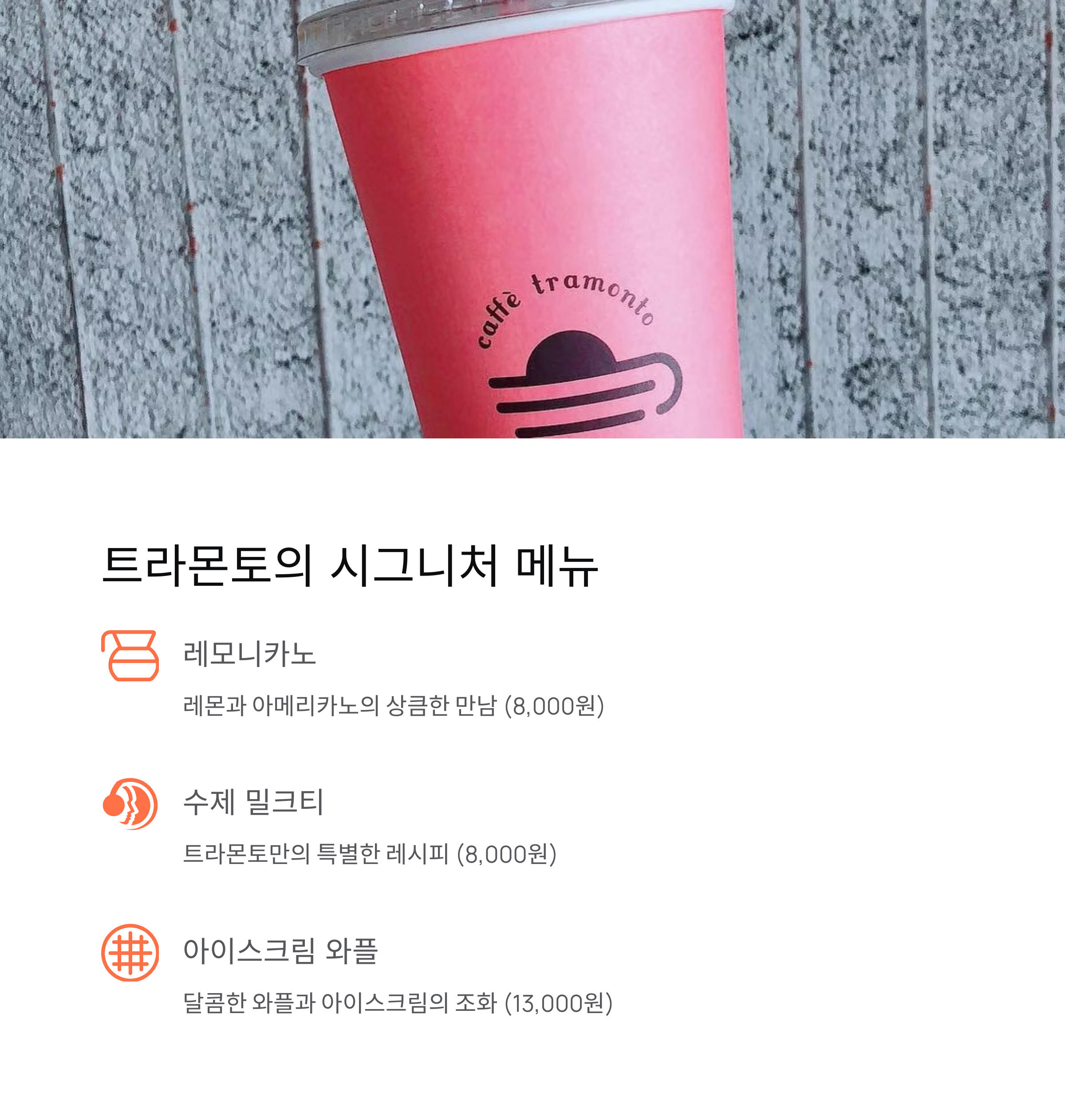 뷰, 향기, 감성, 여유 이 네 가지가 모두 갖춰진 강화도의 특별한 카페, 트라몬토에서 소중한 하루를 보내보세요. 족욕과 오션뷰, 감성 가득한 디저트와 함께 몸과 마음이 편안해지는 진짜 힐링을 경험할 수 있습니다.