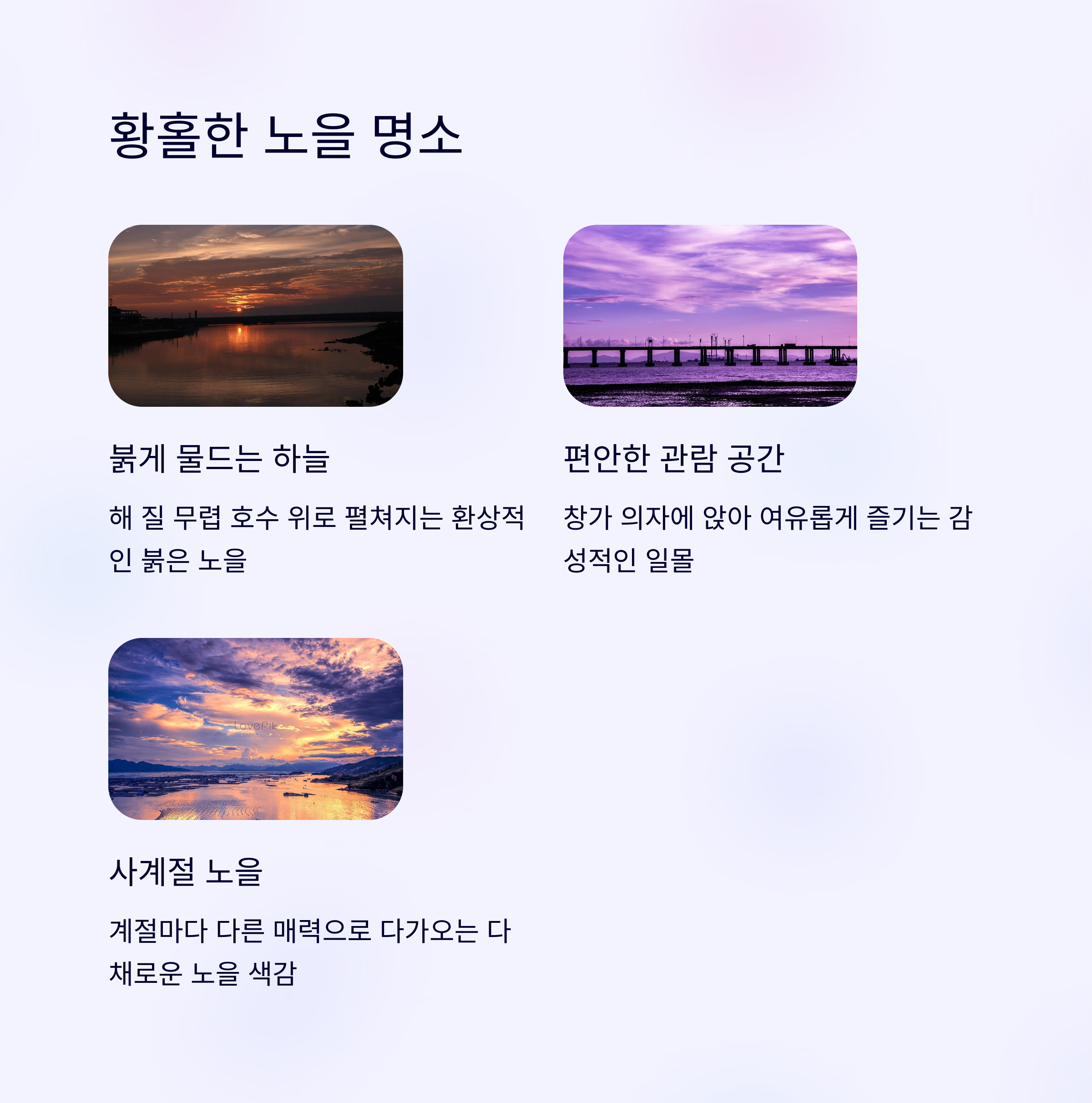 | 추천 시간대 | 오후 5시 이후 노을 질 무렵 방문 시 최적 |