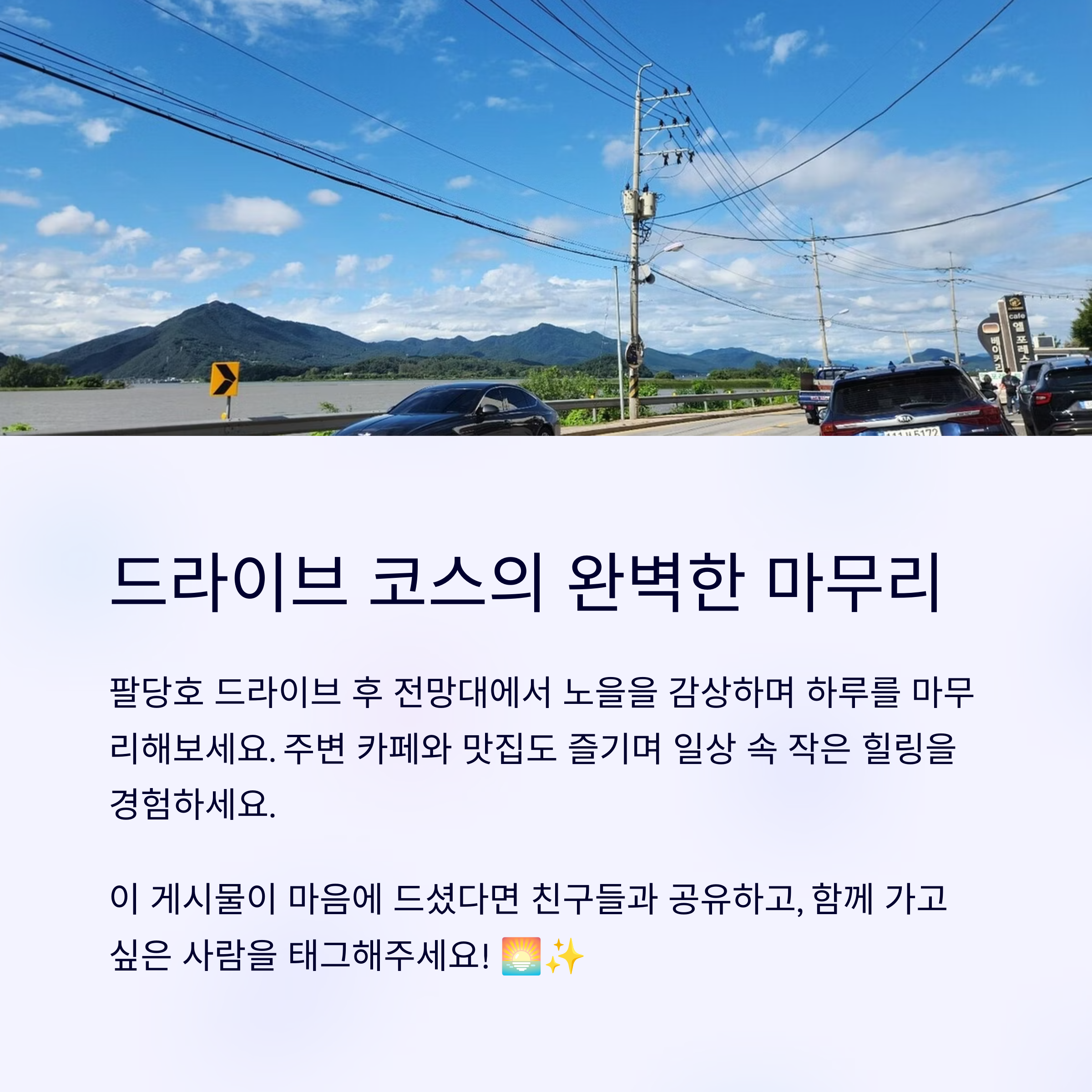 팔당호 전망대를 다녀오신 적 있으신가요? 추천 시간대나 숨은 포인트, 사진 명소가 있다면 댓글로 자유롭게 공유해 주세요. 방문 예정인 분들에게 큰 도움이 될 거예요!