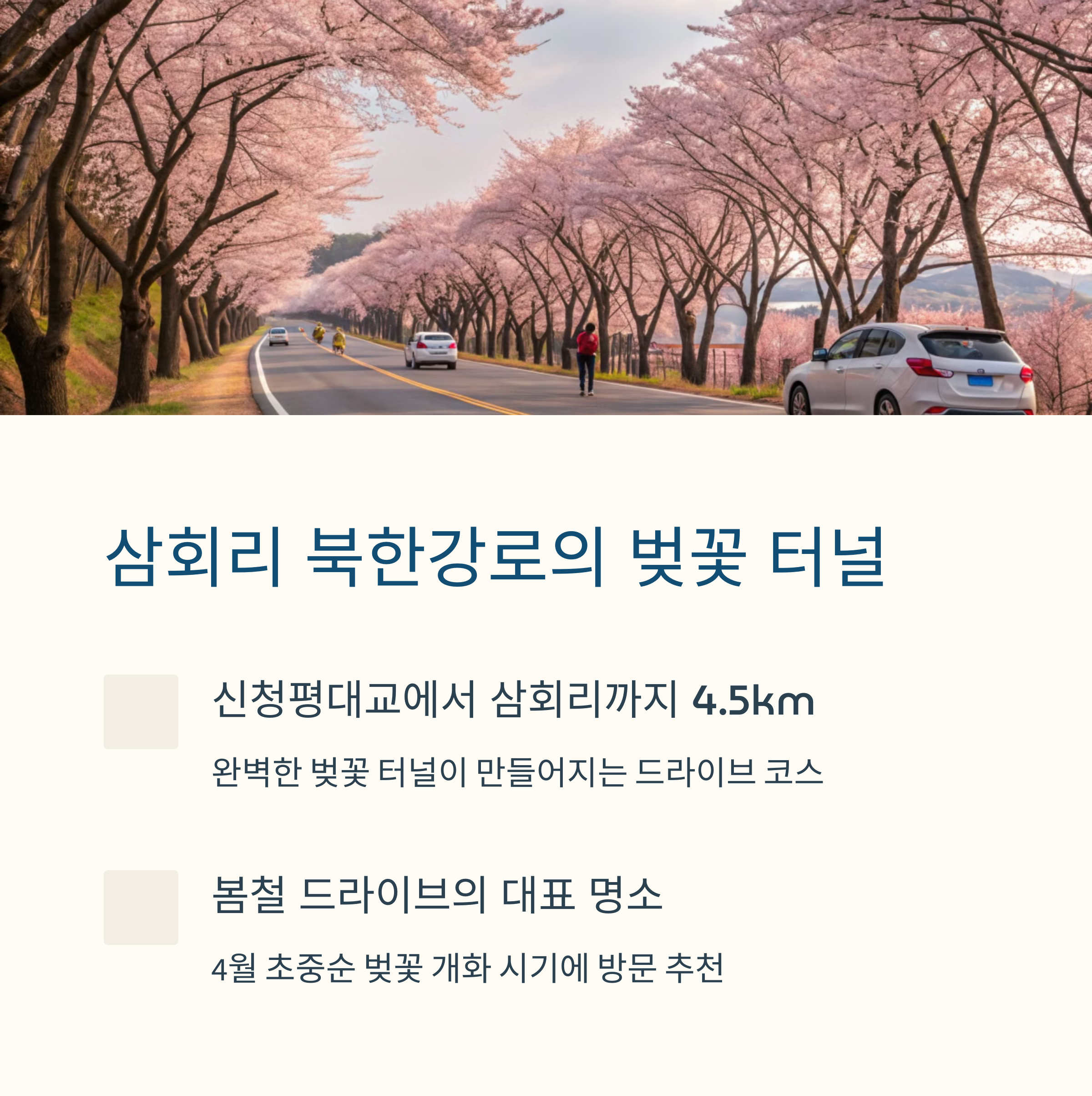 여러분이 추천하는 **봄철 드라이브 코스**가 있나요? 또는 방문해 본 장소 중 인상 깊었던 곳이 있다면 댓글로 공유해 주세요! 소중한 경험을 나누어 함께 더 많은 분들께 유익한 정보를 제공해요 😊