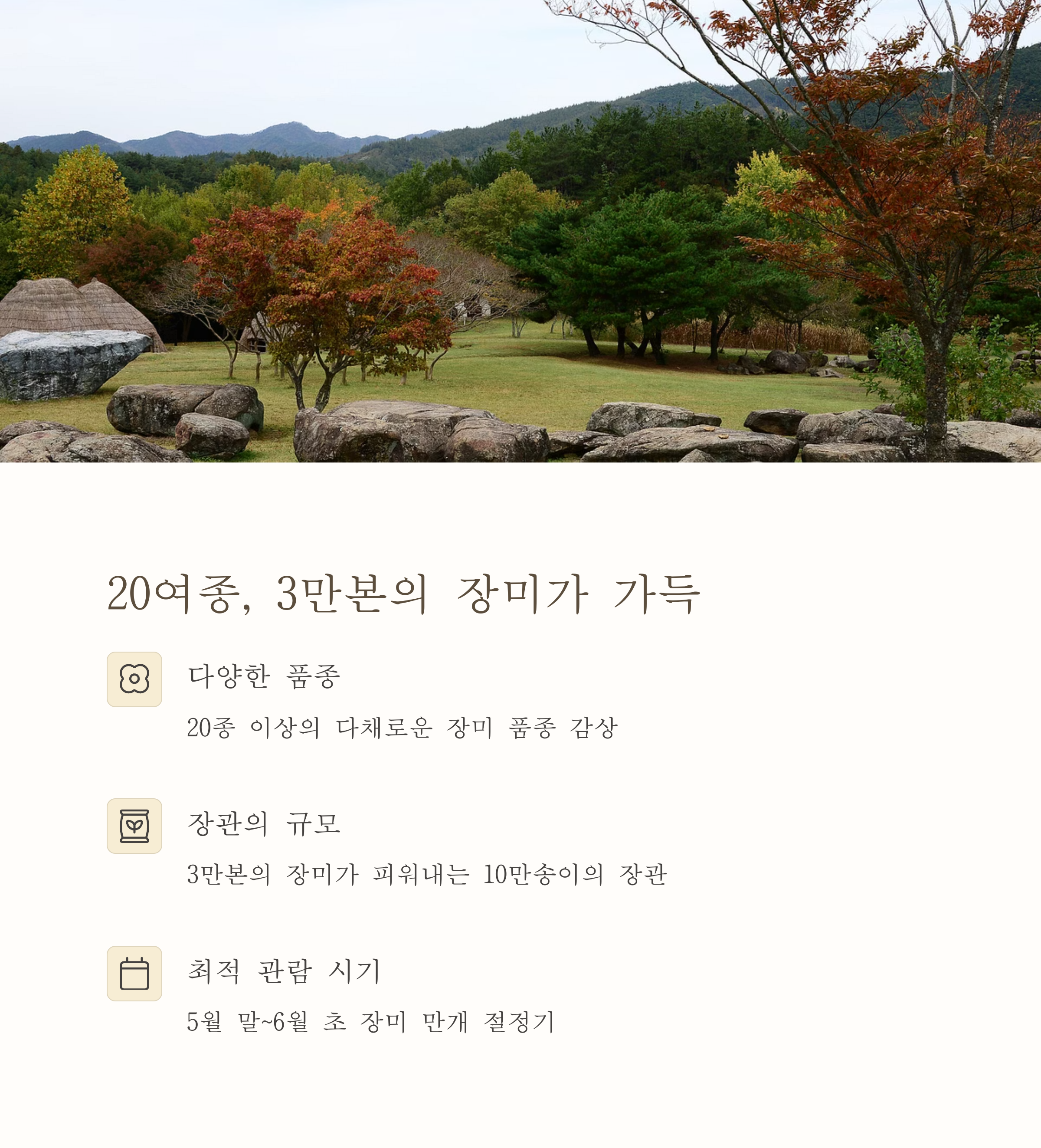 방문 시기 5월 말~6월 초, 장미가 절정일 때 방문 추천