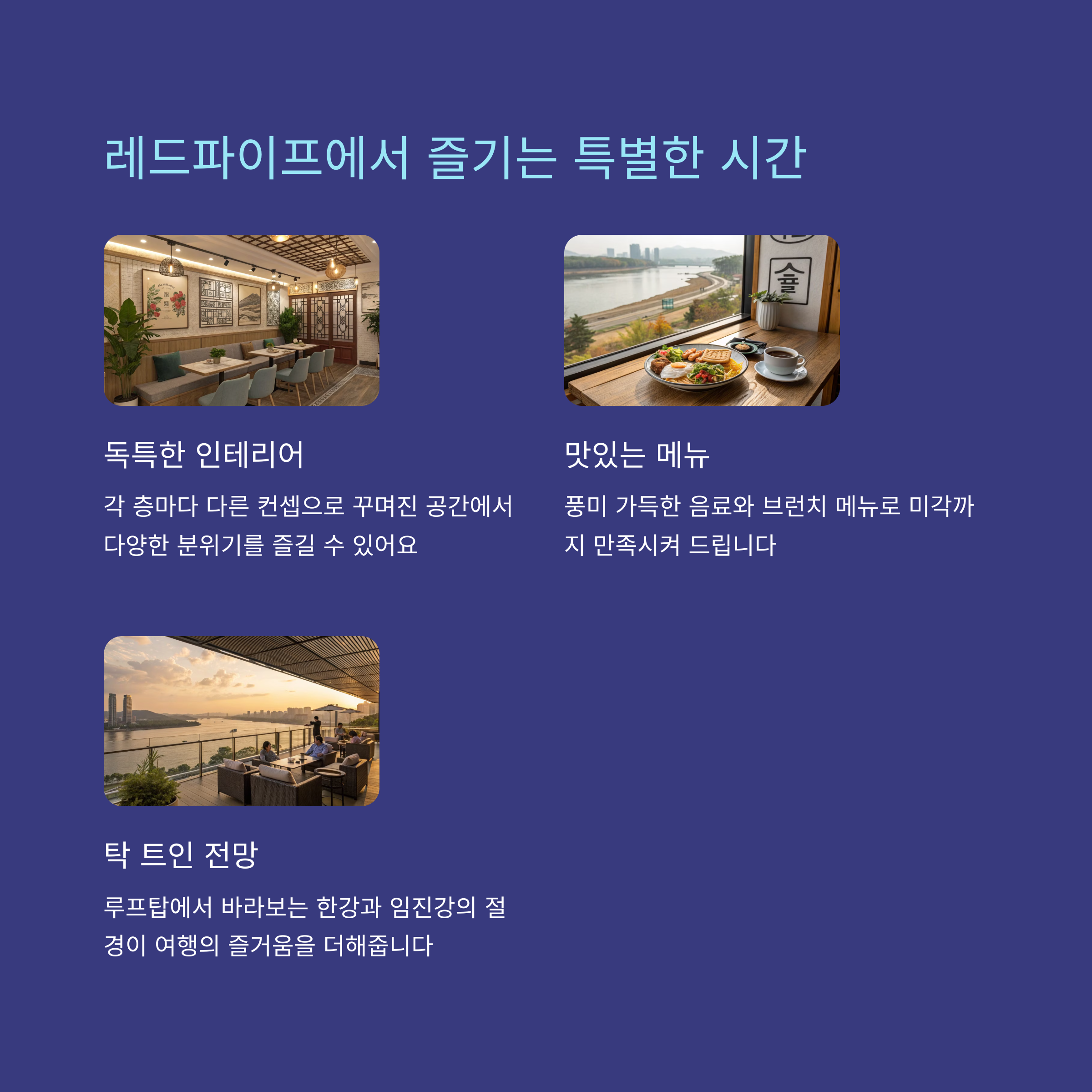 | 레드파이프 | 한강과 임진강 뷰, 5개층 카페 | 감성적인 공간과 맛있는 브런치 |