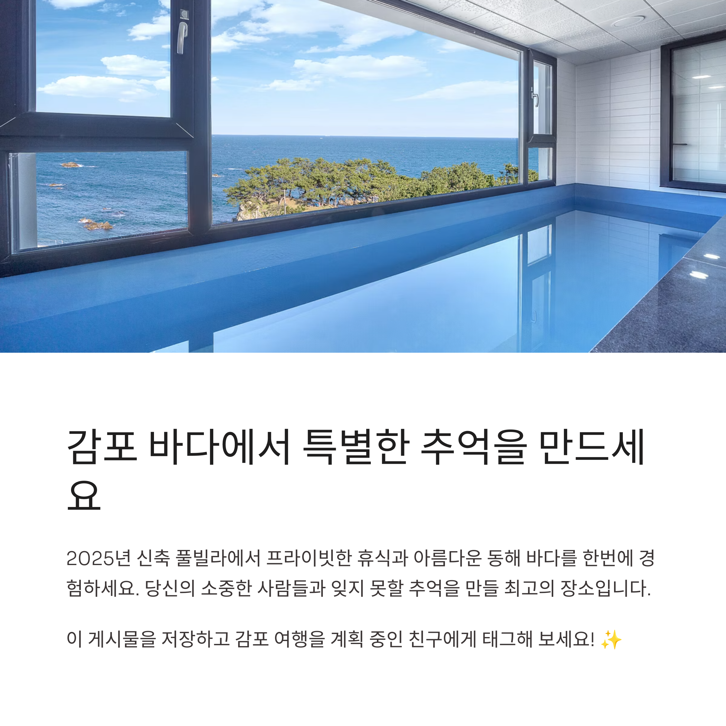 감포 바다와 통창 뷰, 프라이빗한 휴식을 위한 신축 풀빌라