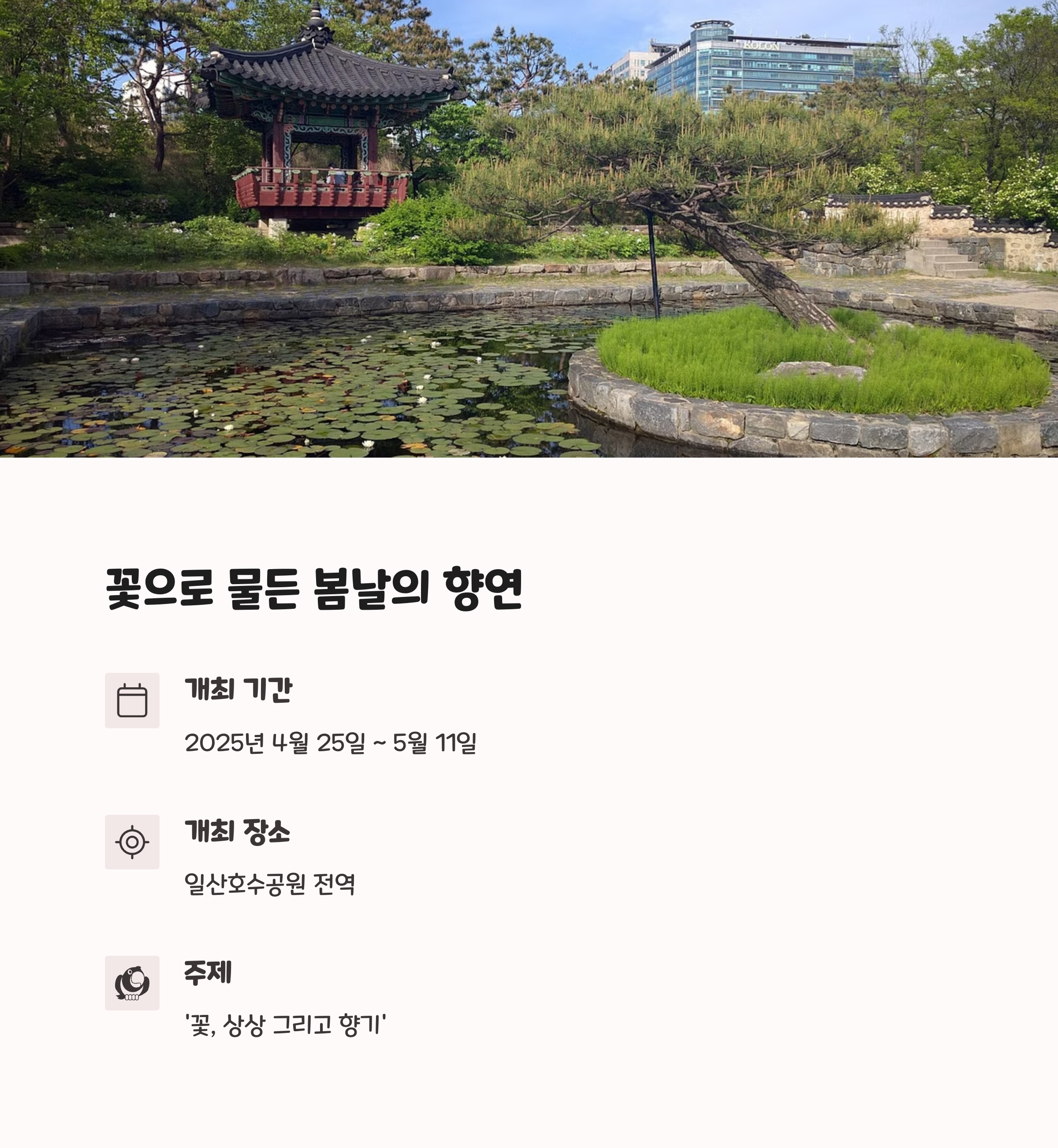 | 주요 장소 | 일산호수공원 (고양시 일산동구 장항동) |