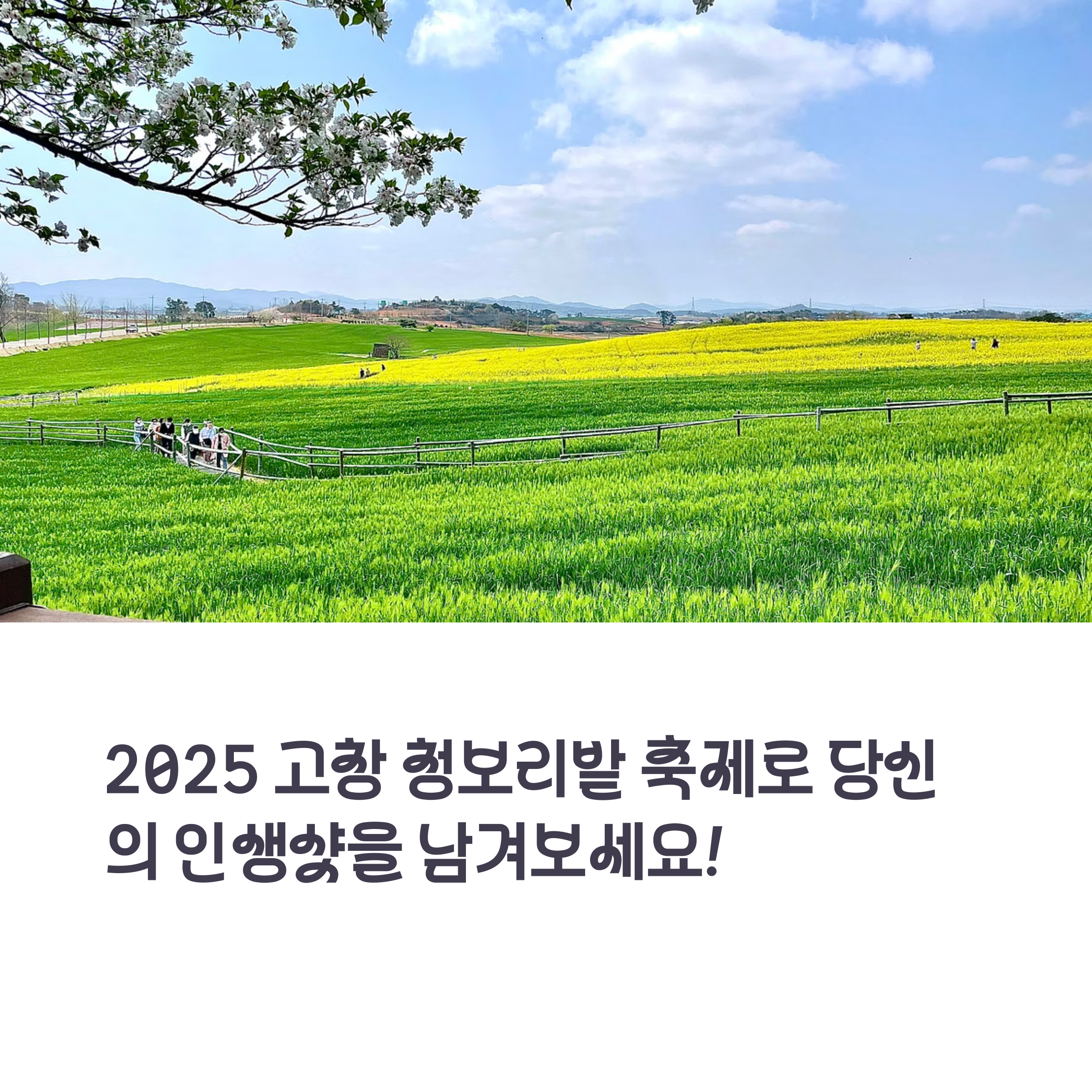 | 초록 보리밭과 유채꽃이 만드는 감성 풍경 | 촬영 각도와 빛이 좋은 셀카 명소 | 가족, 연인, 친구와 함께 방문하기 좋은 코스 |
