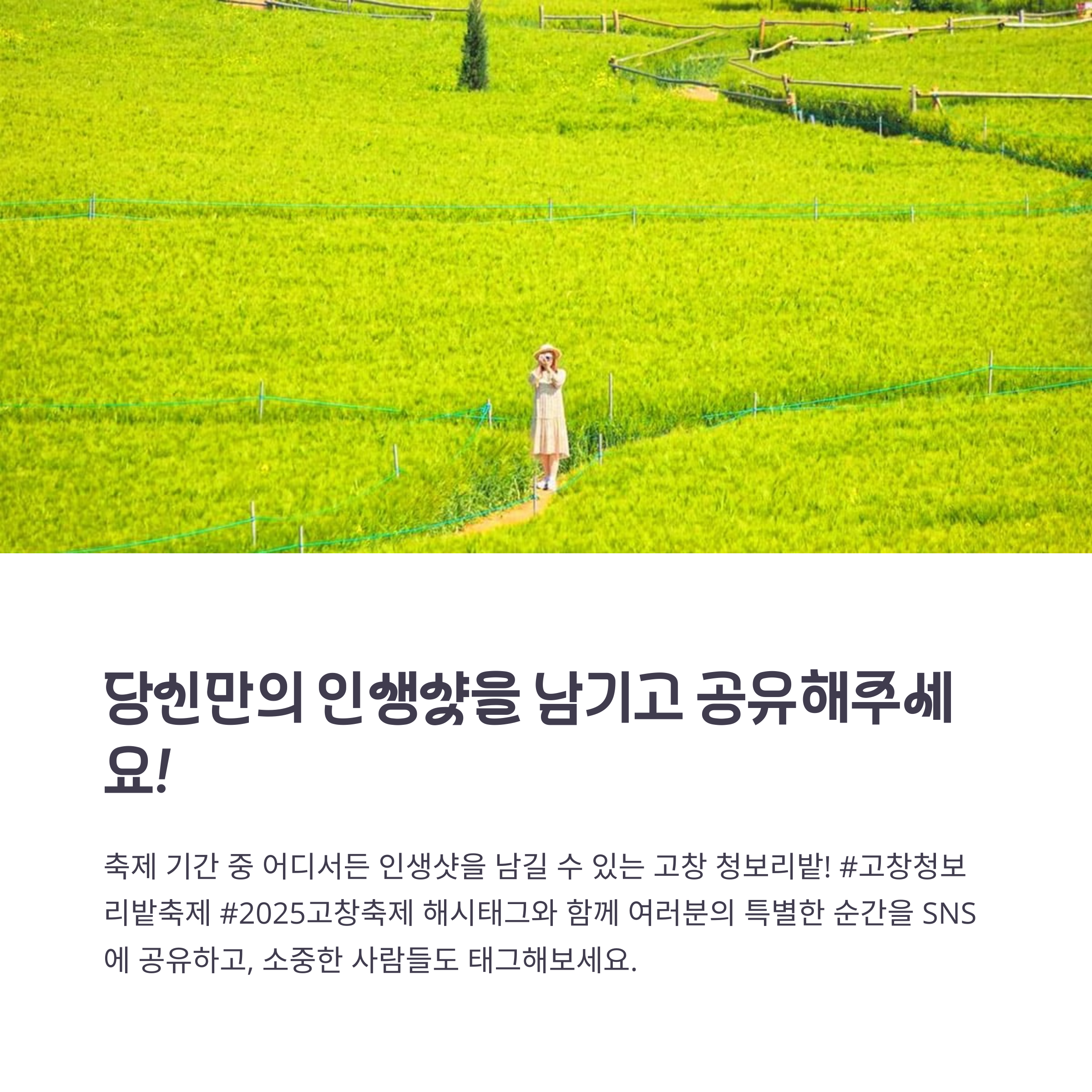 고창 청보리밭 축제에 다녀오셨나요? 여러분이 가장 좋아하는 포토존은 어디인가요? 댓글로 다양한 의견과 추천 장소를 공유해주세요. 서로의 추억을 나누며 더 따뜻한 커뮤니티를 만들어가요!