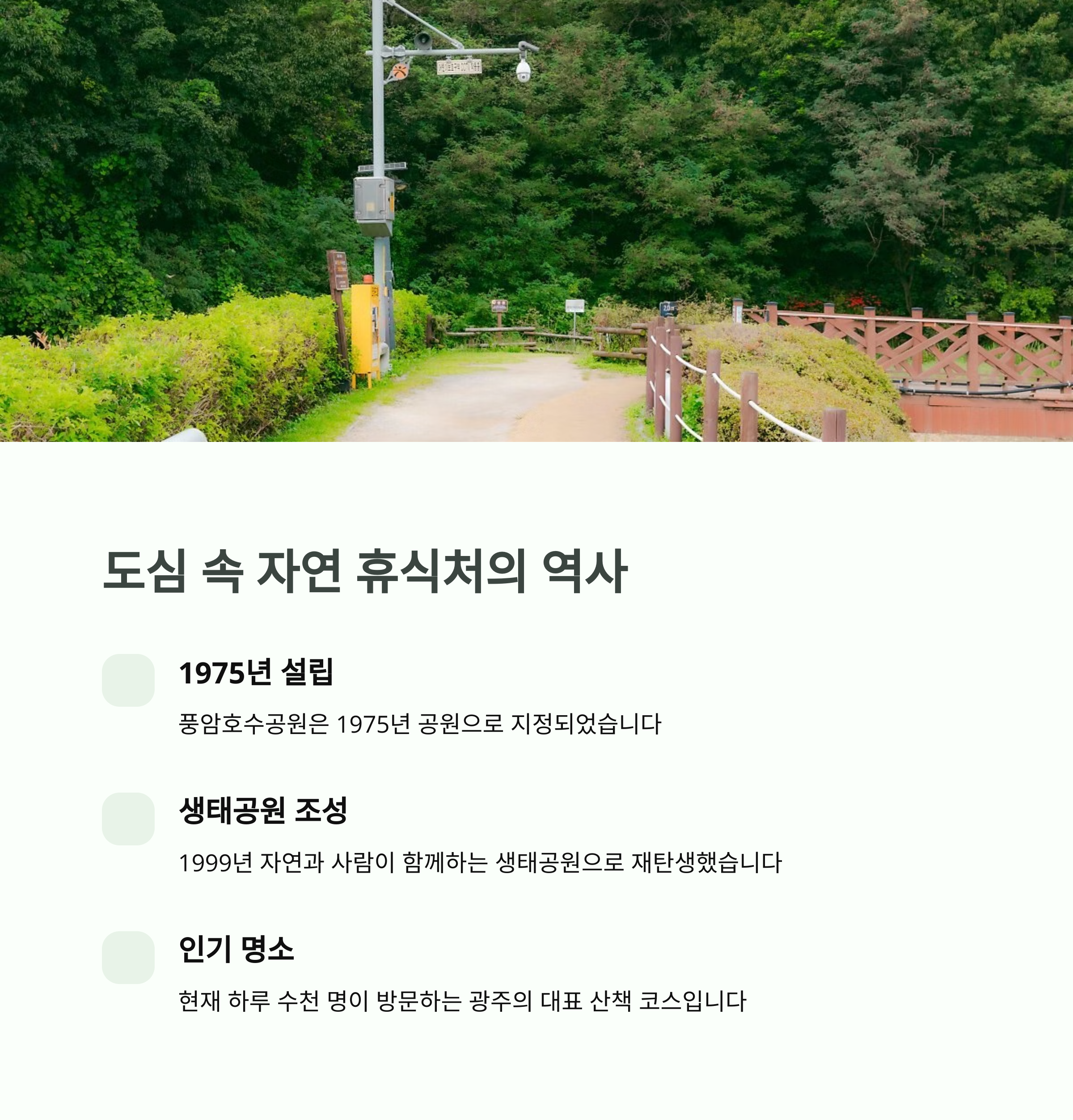 광주 풍암저수지를 다녀오신 후 느낌이나 사진 찍기 좋은 구간이 있다면 댓글로 나눠주세요! 추천 시간대나 꿀팁도 함께 환영입니다 :)