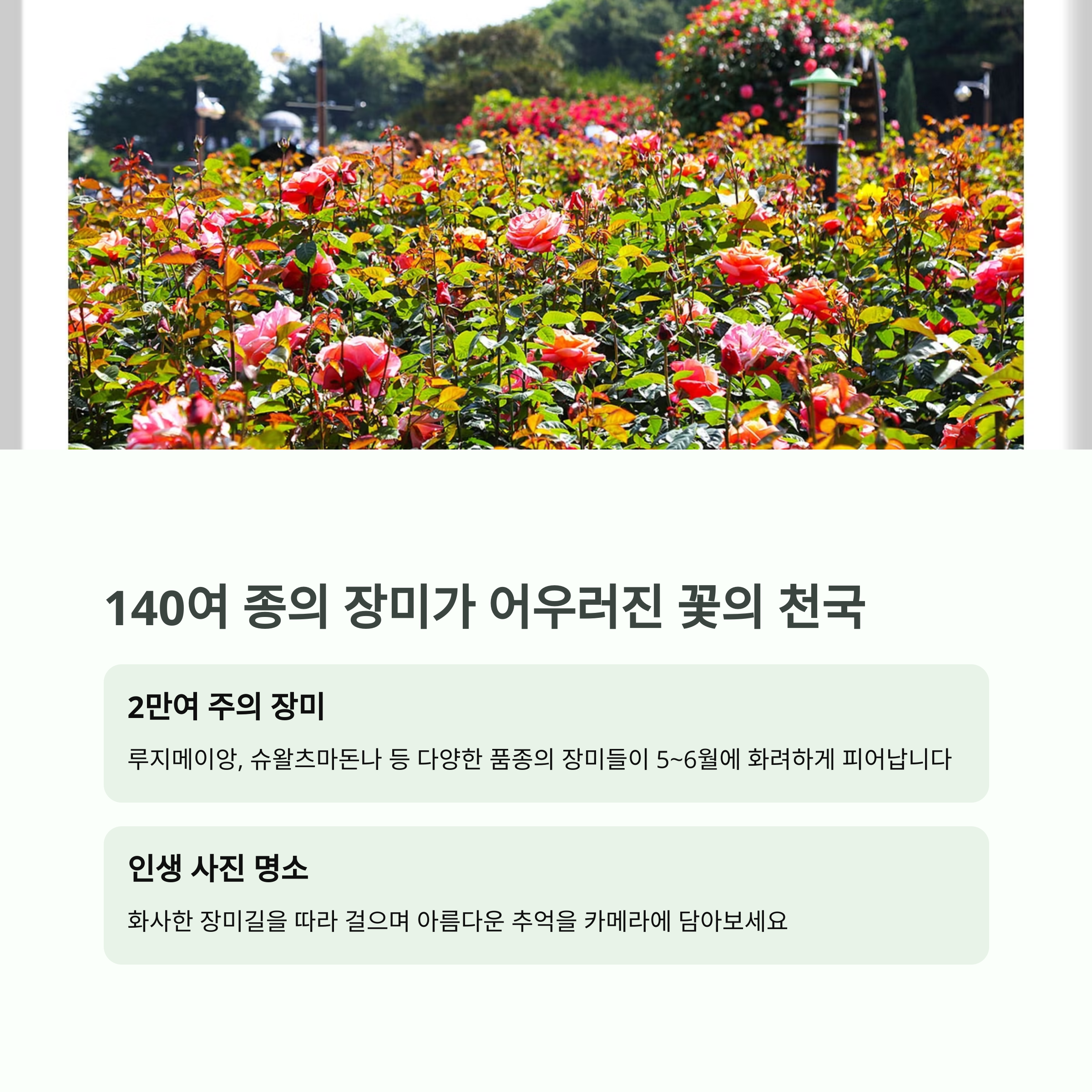 추천 포인트 장미 산책로, 시화 구간, 호수 목교, 조명 벤치, 데이트 야경 스팟