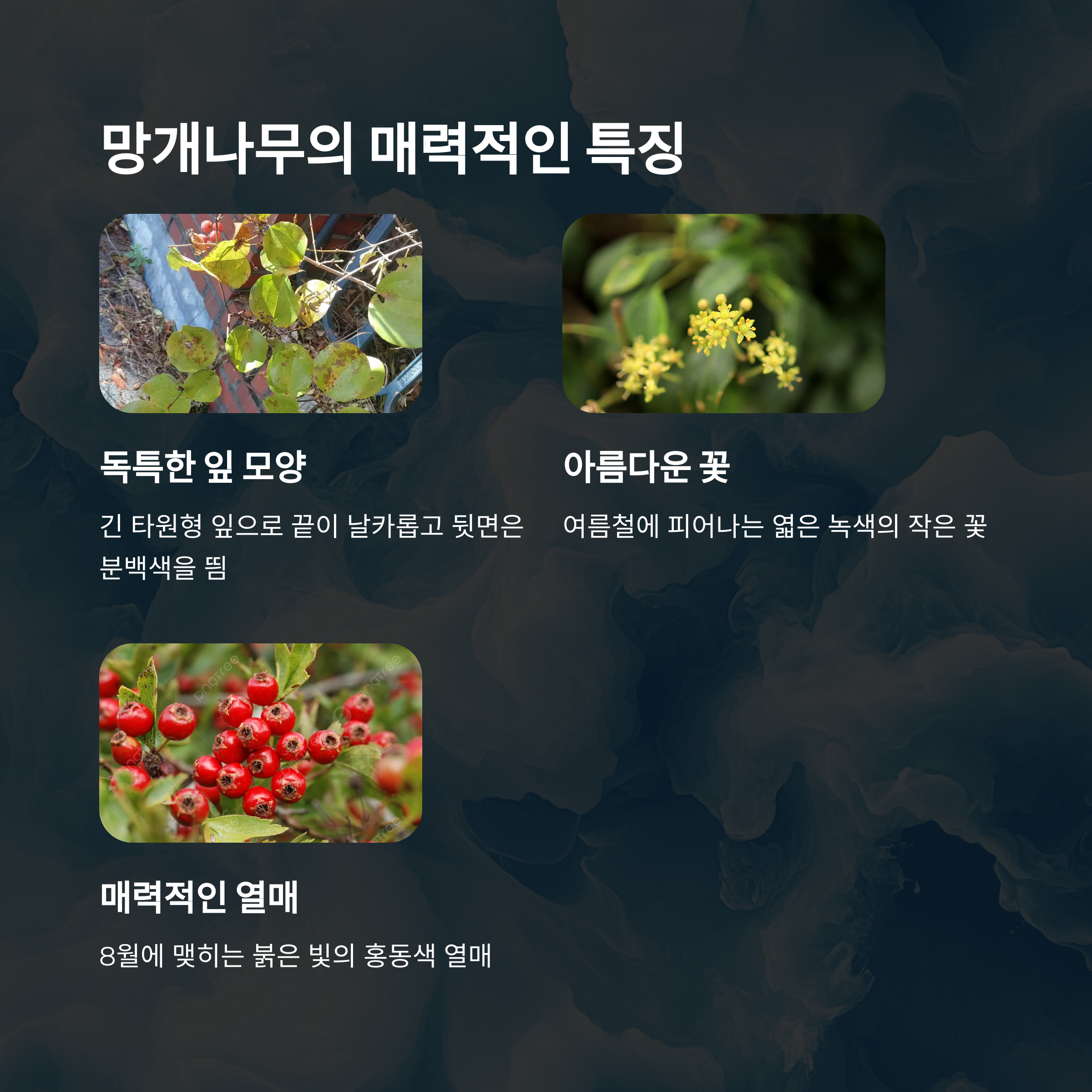 특히 여름에는 망개나무에 엷은 녹색의 작은 꽃이 피어나며, 보는 이로 하여금 생명의 소중함을 다시금 느끼게 합니다. 8월이면 열매가 맺히기 시작해 선홍빛의 아름다움으로 숲길을 장식합니다. 이런 자연의 변화를 가까이에서 체험하는 일은 도시 생활 속에서 쉽게 경험할 수 없는 특별한 경험입니다. 식물 관찰과 계절의 흐름을 자연스럽게 느끼는 이 시간을 통해 내면의 평화를 되찾을 수 있습니다.