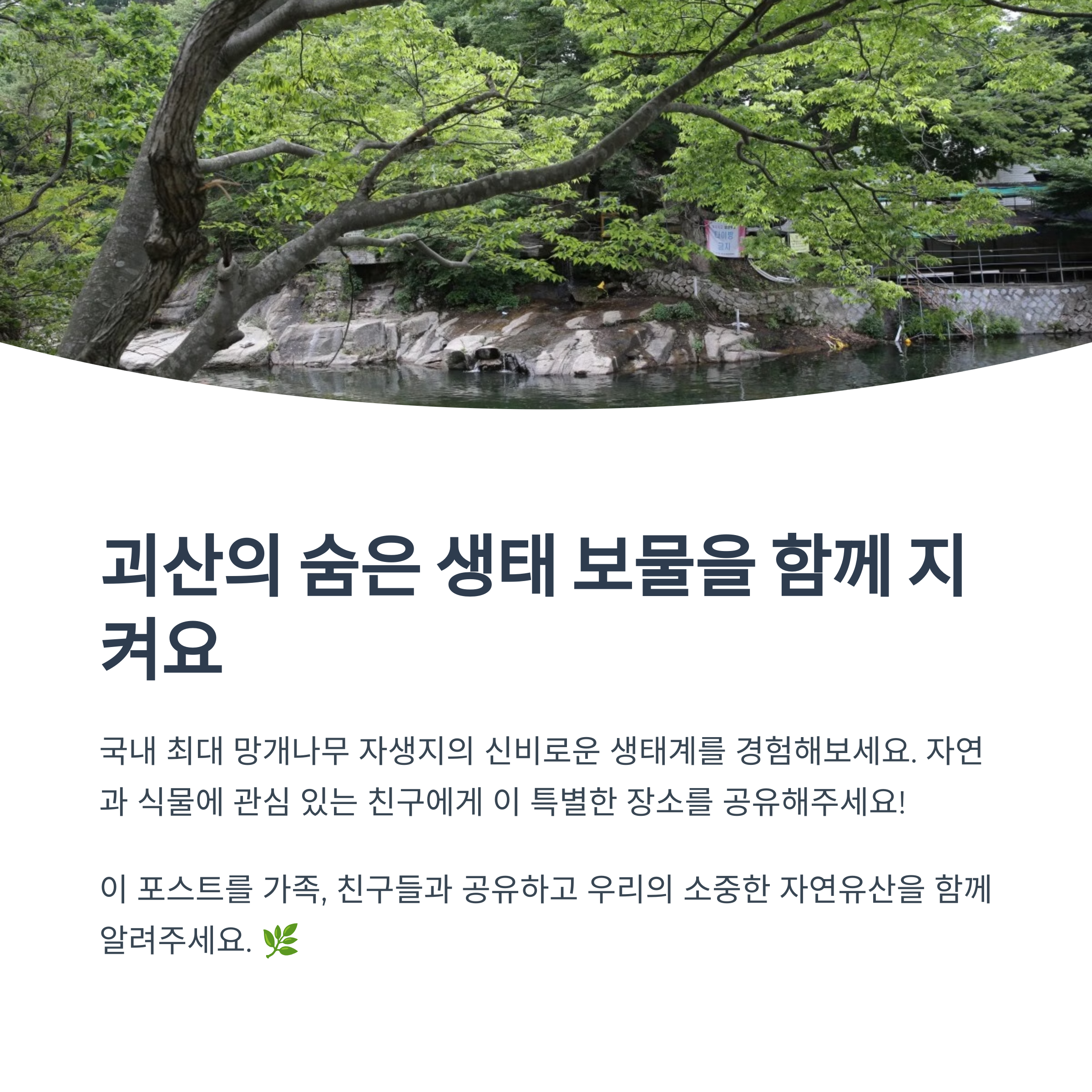 충북 괴산의 숨어 있는 여행지 추천 천연기념물 제266호 생태명소 한적하고 조용한 여행 코스