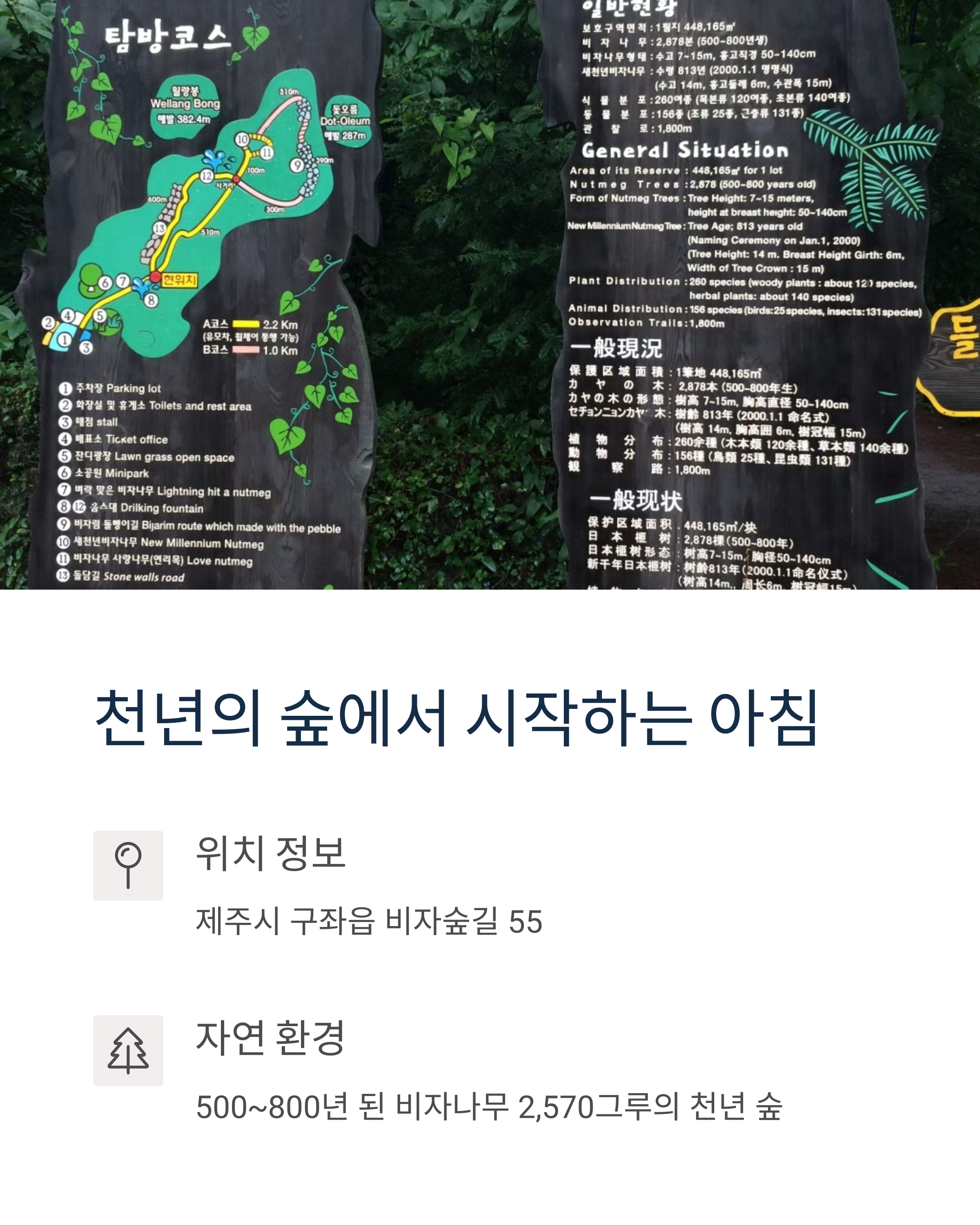 | 천년 비자나무가 가득한 자연 산책길 | 루프탑과 반려견 동반이 가능한 감성 카페 | 자연 속 쉼과 커피를 함께 즐기는 여정 |