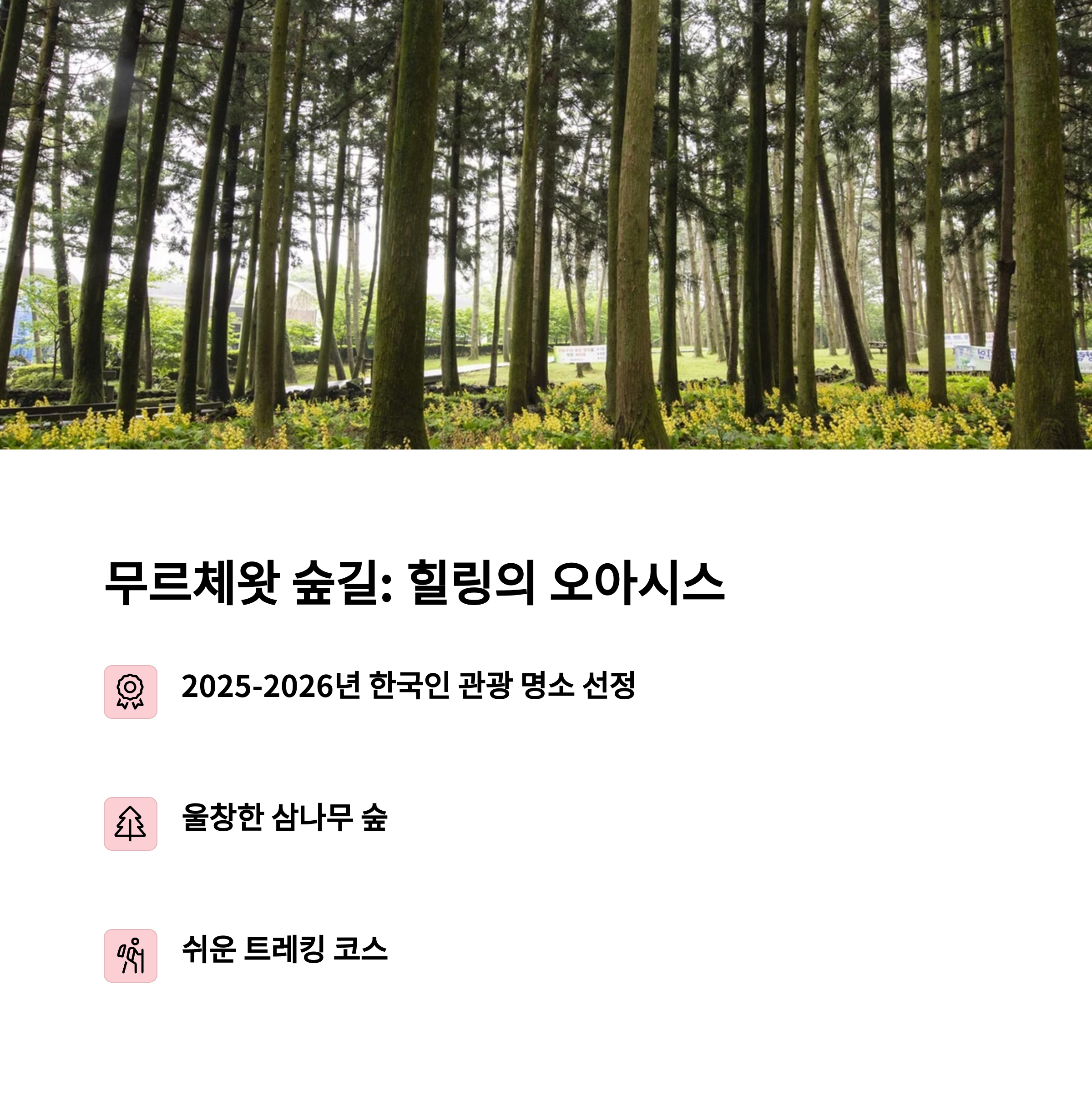 | 가족여행 최적지 | 자연, 체험, 휴식이 모두 가능한 여행지입니다. |