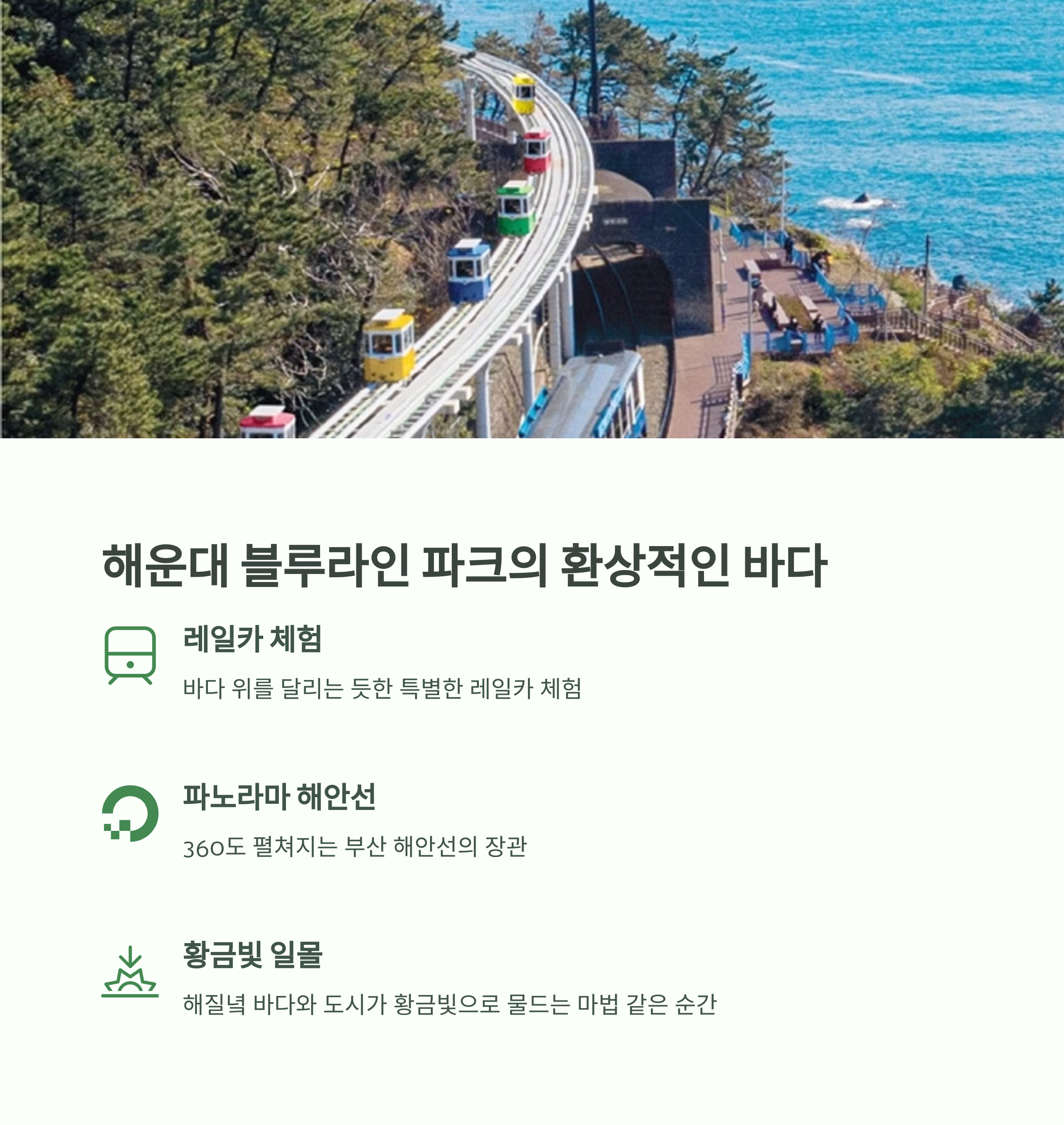 마지막으로 소개할 장소들은 부산 해운대 블루라인 파크, 경남 하동 십리벚꽃길, 부산 죽성 드림세트장입니다. 해운대는 바다를 따라 레일카를 타고 이동하며 하늘과 바다가 어우러진 환상적인 풍경을 담을 수 있는 곳입니다. 하동의 벚꽃길은 봄이 되면 터널처럼 펼쳐지는 벚꽃이 로맨틱함을 더하며, 죽성 드림세트장은 중세풍 성당과 바다가 만나 이국적인 분위기를 자아냅니다. 특히 일출 시간대에는 붉게 물든 하늘과 바다의 조화가 인상적인 사진을 남겨줍니다.