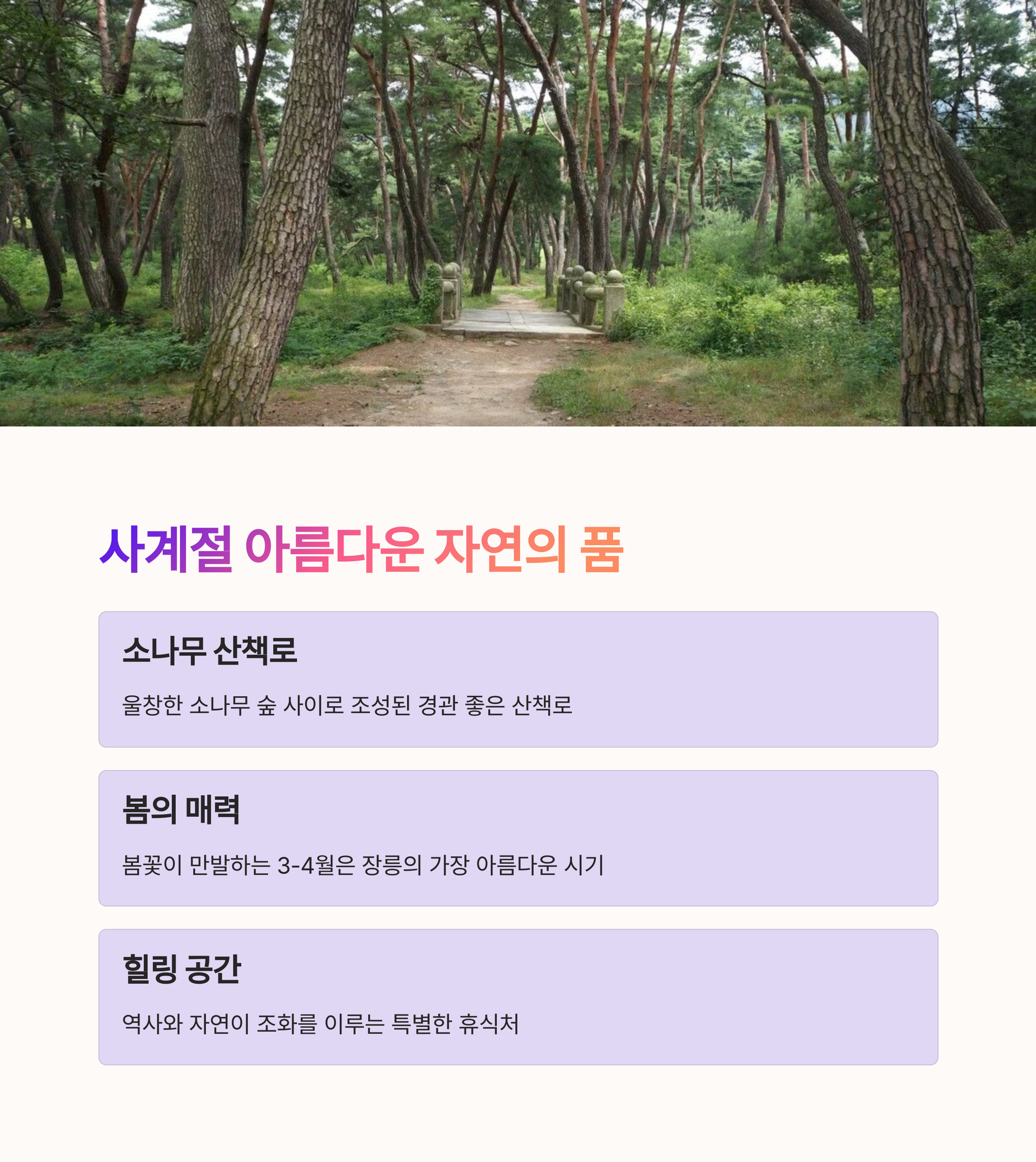 소나무 숲 산책로로 힐링하기 좋은 명소 | 입장료 2,000원으로 가성비 좋은 여행지 | 역사와 자연이 함께 어우러진 조용한 봄 여행 |