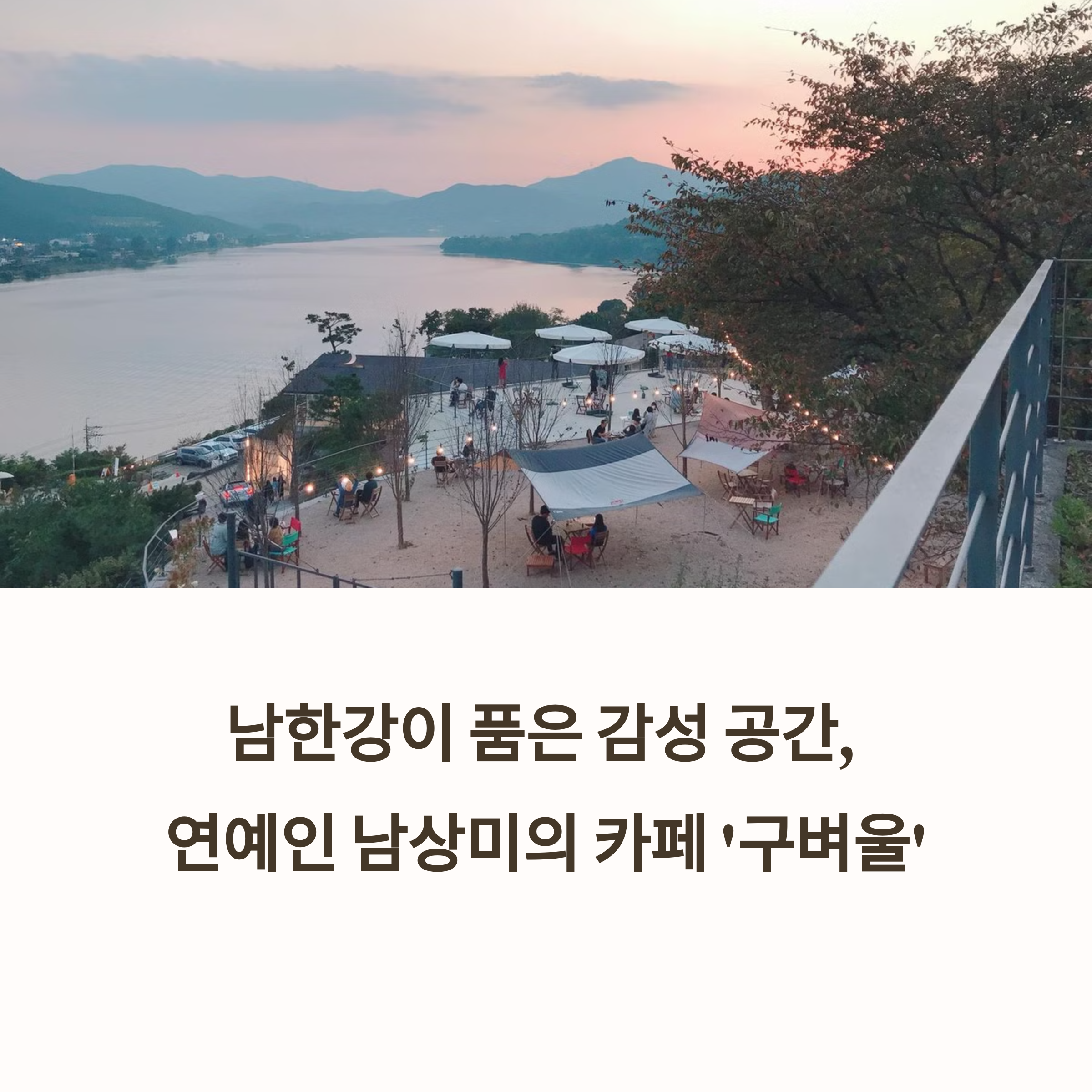 바쁜 일상 속에서 커피 한 잔의 여유는 많은 사람에게 위안이 됩니다. 특히 자연과 함께하는 공간에서의 한 잔은 그 이상의 가치를 선사하죠. 오늘 소개할 곳은 경기도 양평에 위치한 감성 카페 ‘구벼울’입니다. 연예인 남상미씨가 운영하는 이곳은 아름다운 남한강 전망과 고요한 분위기로 많은 사람들의 사랑을 받고 있습니다. 카페 구벼울은 입구부터 깔끔하게 정돈된 정원과 감성적인 외관으로 방문객들의 기대감을 높여줍니다. 모던한 실내 인테리어와 더불어 옥상 테라스에서는 강물과 어우러진 탁 트인 전경을 감상할 수 있어, 사진을 좋아하는 분들에게도 인기가 많습니다. 날씨 좋은 날엔 외부 테이블에 앉아 커피를 즐기는 사람들로 가득하죠.