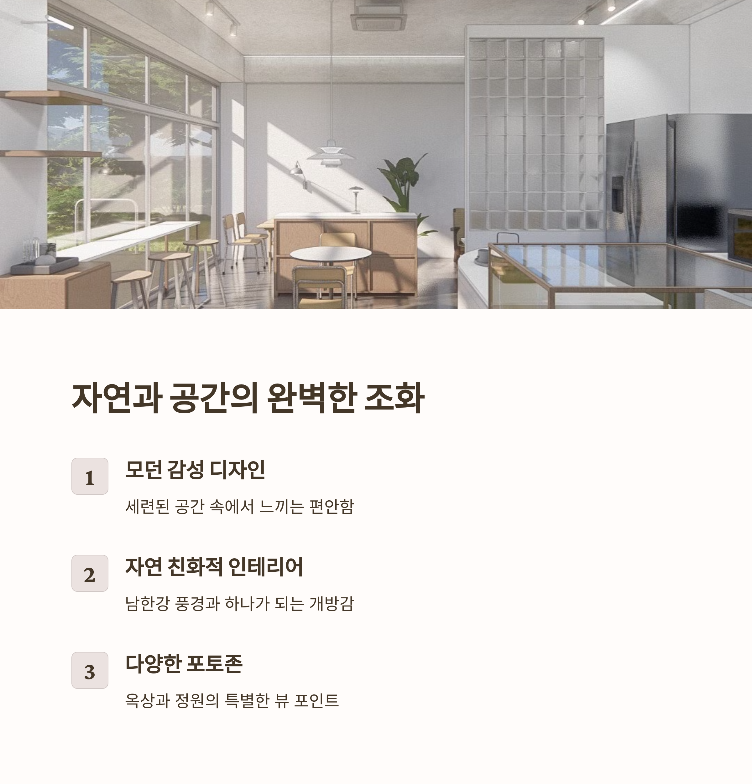 | 장소 특징 | 남한강 전망, 야경, 옥상 테라스, 정원 공간 |