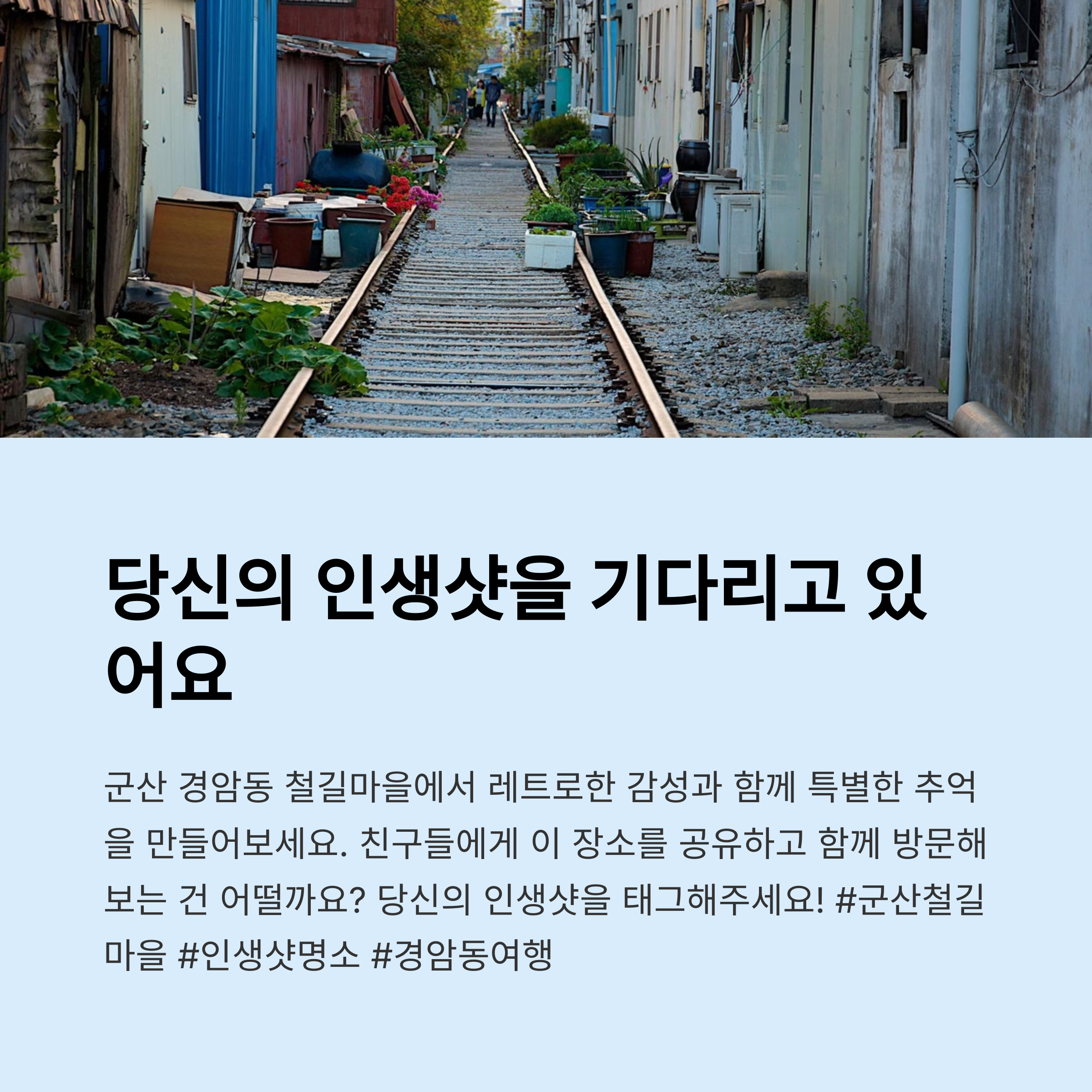 이번 글에서는 군산 경암동 철길마을의 핵심 인생샷 스팟을 총정리해 소개드릴게요. 감성 가득한 여행을 계획 중이시라면 지금 바로 확인해 보세요!