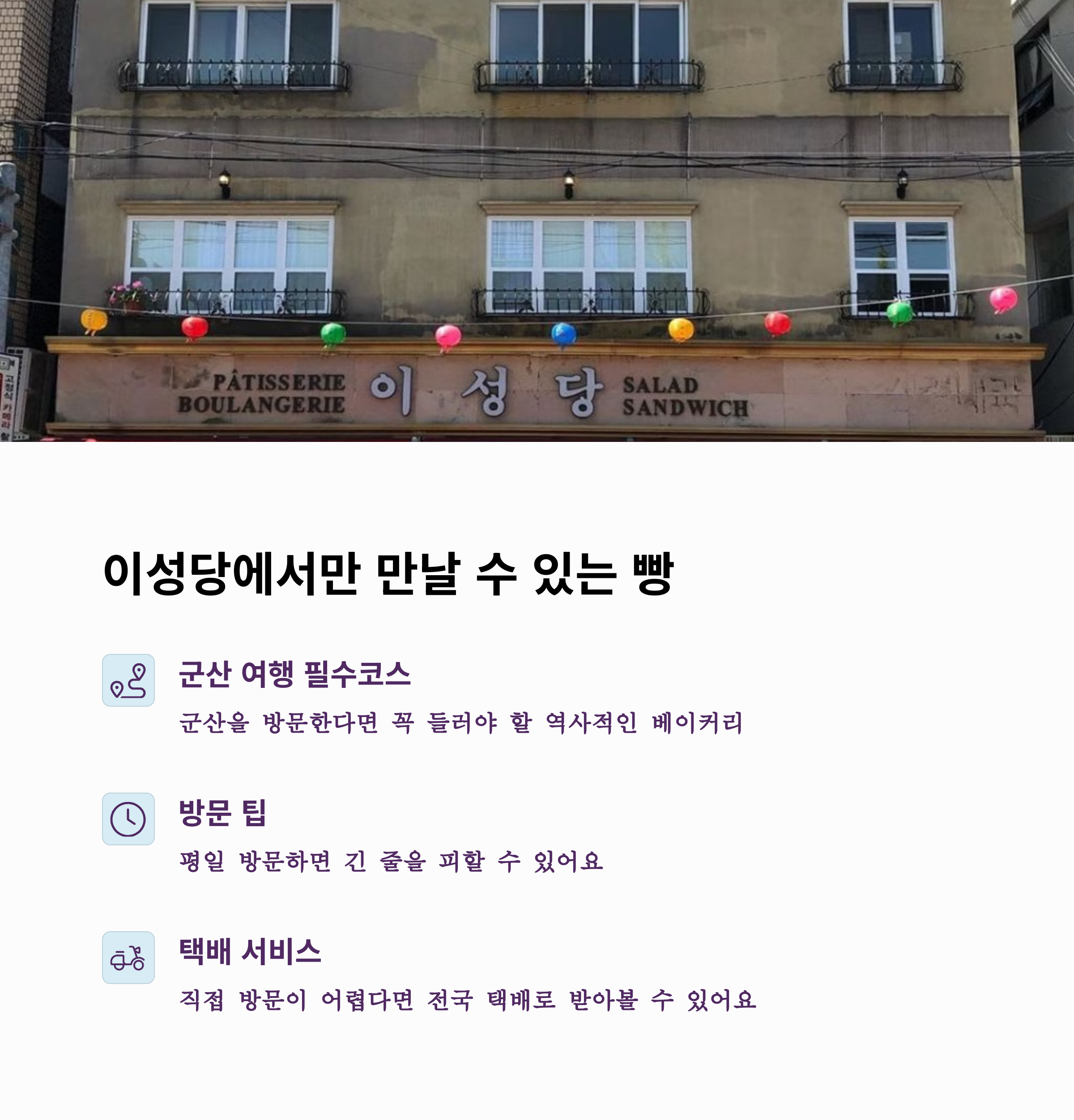 | 위치 | 전북 군산시 중앙로 177, 이성당 본점 (군산역 인근) |
