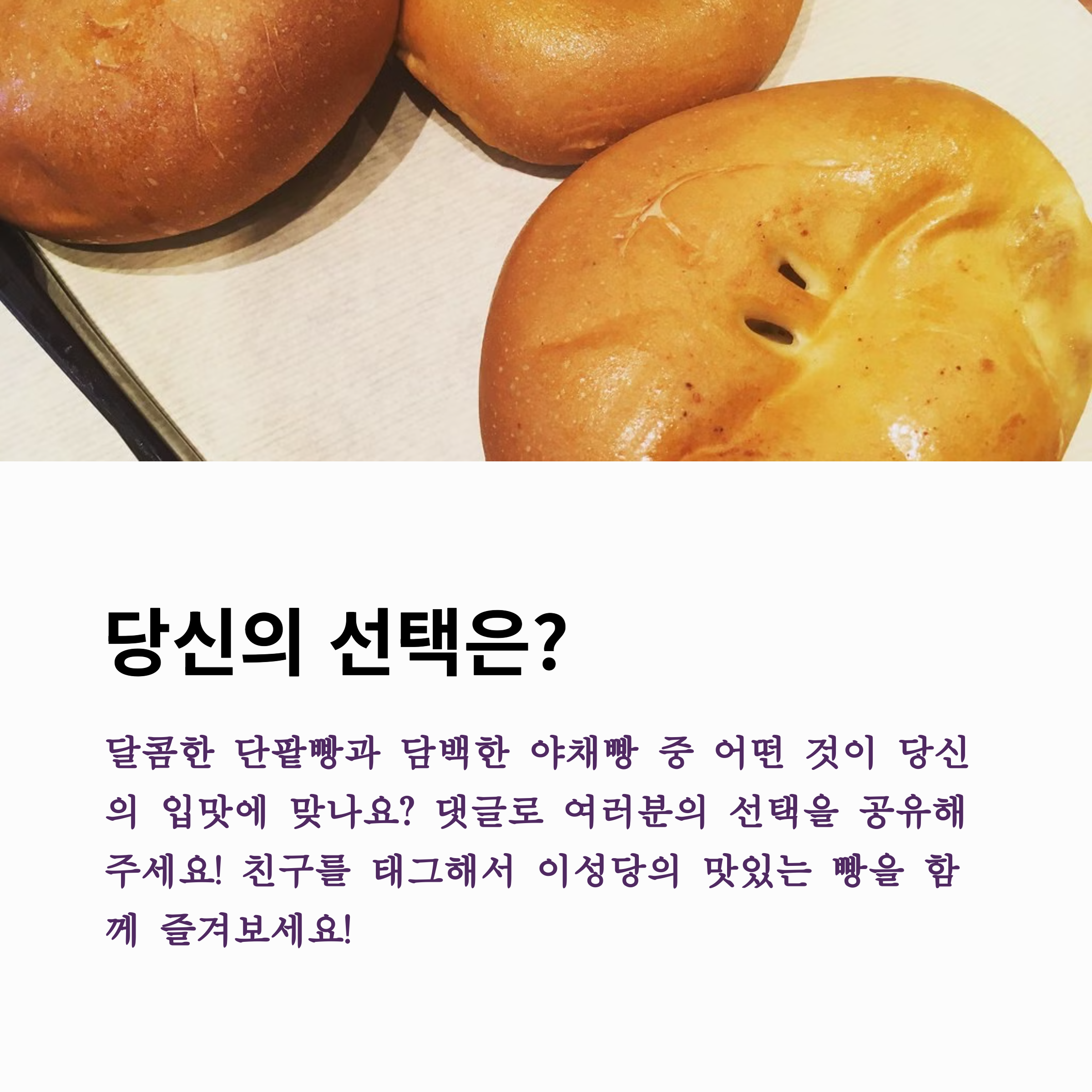 단팥빵과 야채빵 중 여러분의 원픽은 무엇인가요? 맛있게 먹는 팁이나 보관법이 있다면 댓글로 공유해주세요! 빵덕후들의 꿀팁이 기다리고 있습니다.