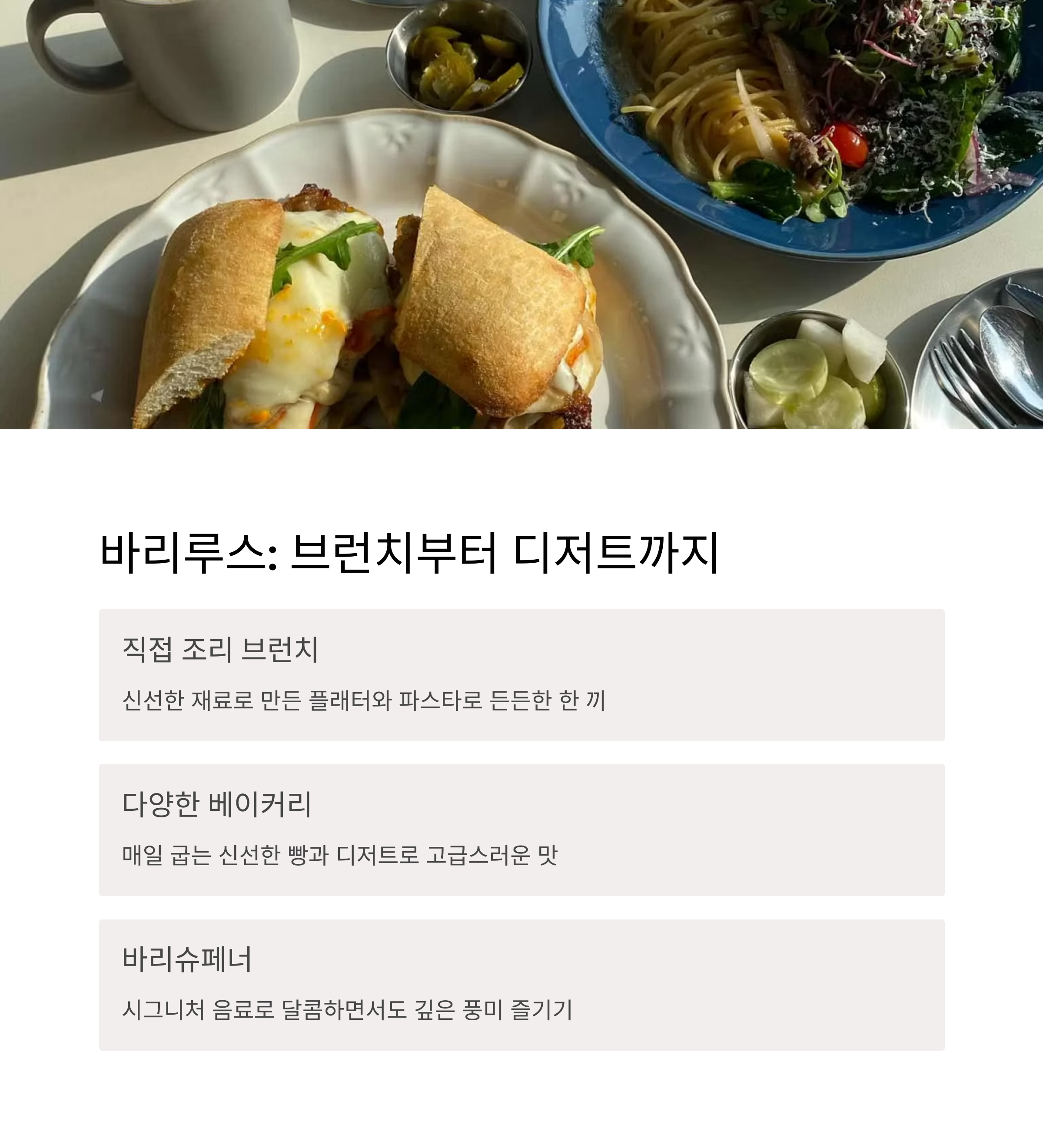 리틀파울로는 베이커리와 유럽 감성 공간을 중시한다면 제격이며, 바리루스는 여유로운 좌석, 브런치, 포토존까지 넓고 다채로운 카페 경험을 원할 때 더욱 만족스러울 수 있습니다. 취향에 따라 선택하거나, 두 곳을 모두 방문해 보는 것도 추천드립니다!