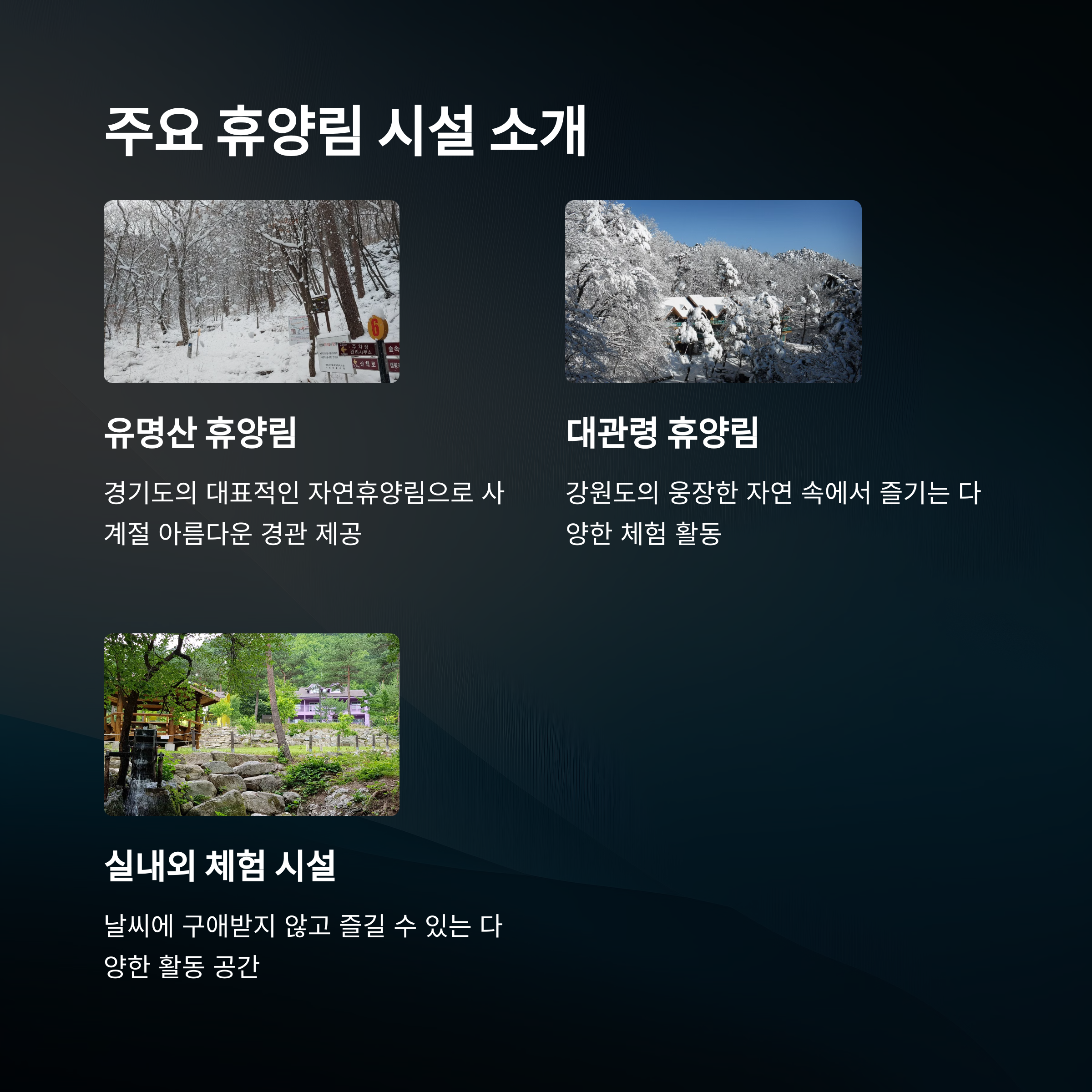 | 주요 자연휴양림 | 유명산, 대관령, 가리왕산 등 계절별 명소 |