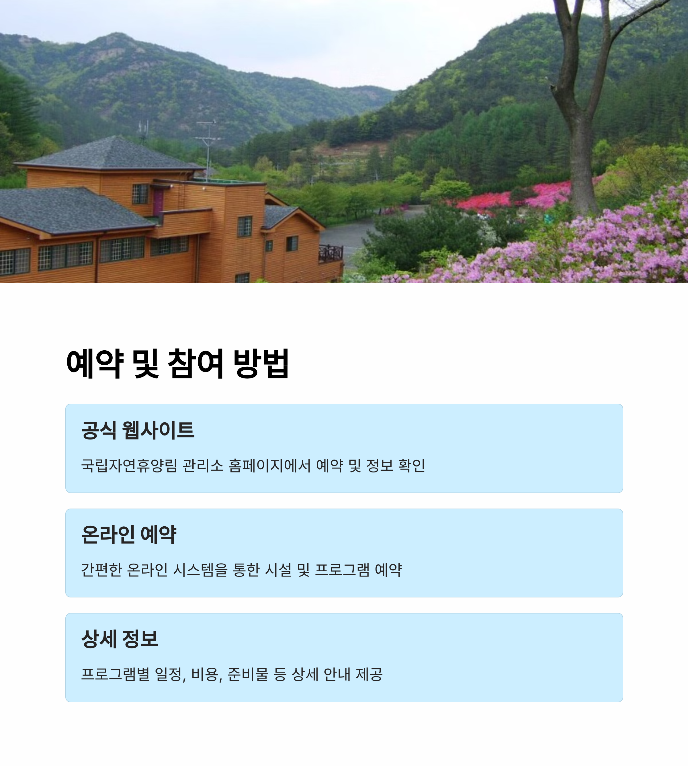 자연휴양림에서 기억에 남는 프로그램이나 추천할 만한 명소가 있다면 댓글로 남겨주세요. 여러분의 경험이 또 다른 누군가의 힐링이 됩니다!
