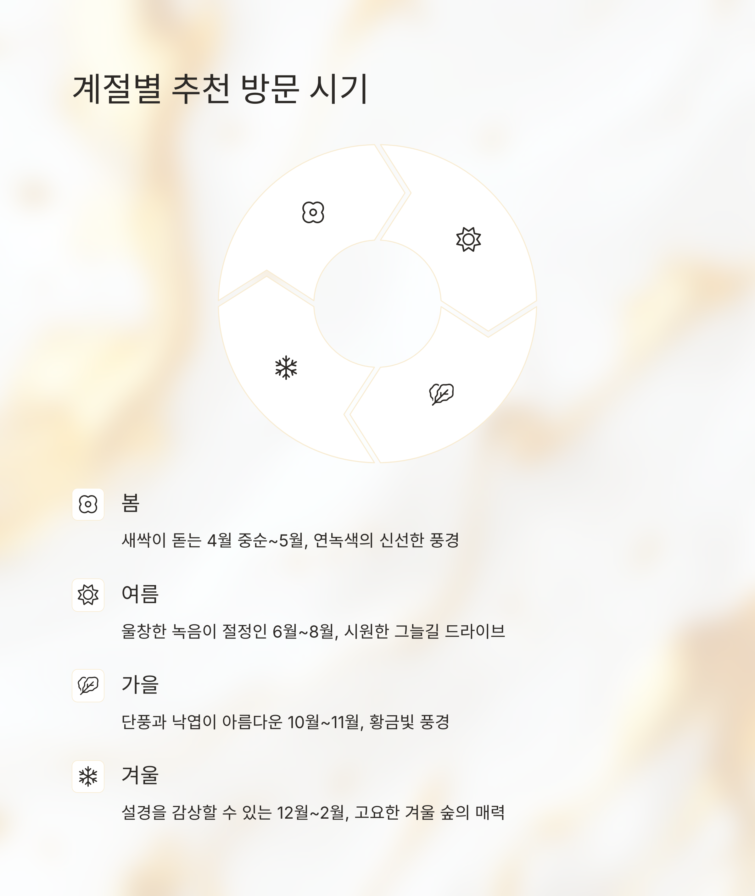 서울 근교 드라이브 명소, 숲길 따라 걷고 쉬는 사계절 힐링 여행