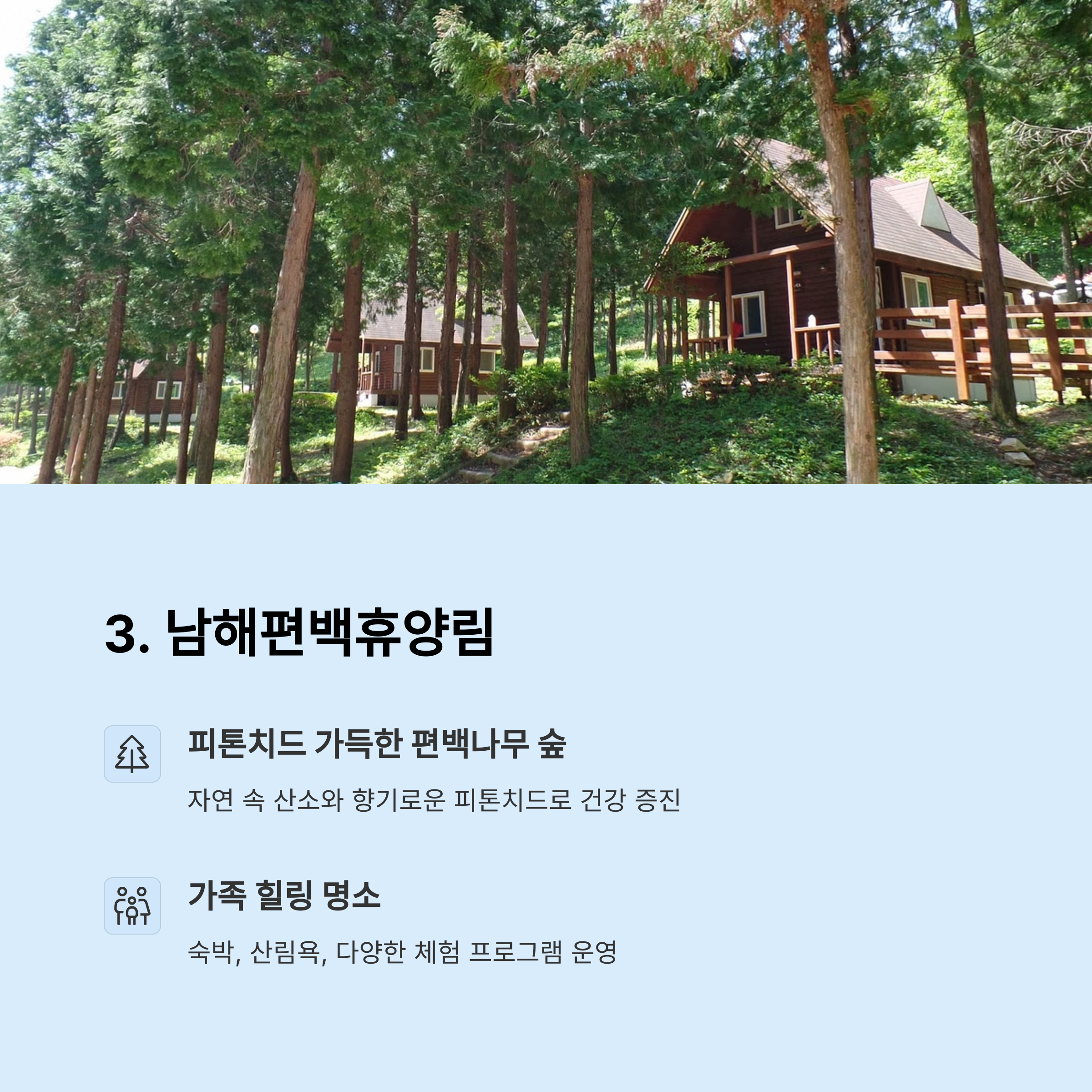 숲과 폭포, 바다와 논, 이국적 풍경까지 모두 갖춘 남해는 어느 계절에 가도 다채로운 여행의 즐거움을 안겨줍니다. 특히 선유폭포를 중심으로 한 오늘의 추천 코스는 하루에 알차게 남해를 담아낼 수 있는 구성으로, 피톤치드 힐링, 감성 사진, 바다 산책까지 모두 한 번에 누릴 수 있는 최고의 루트입니다. 주말 나들이 또는 남해 여행을 계획하고 있다면 오늘 소개한 BEST 5 코스를 꼭 참고해보세요!