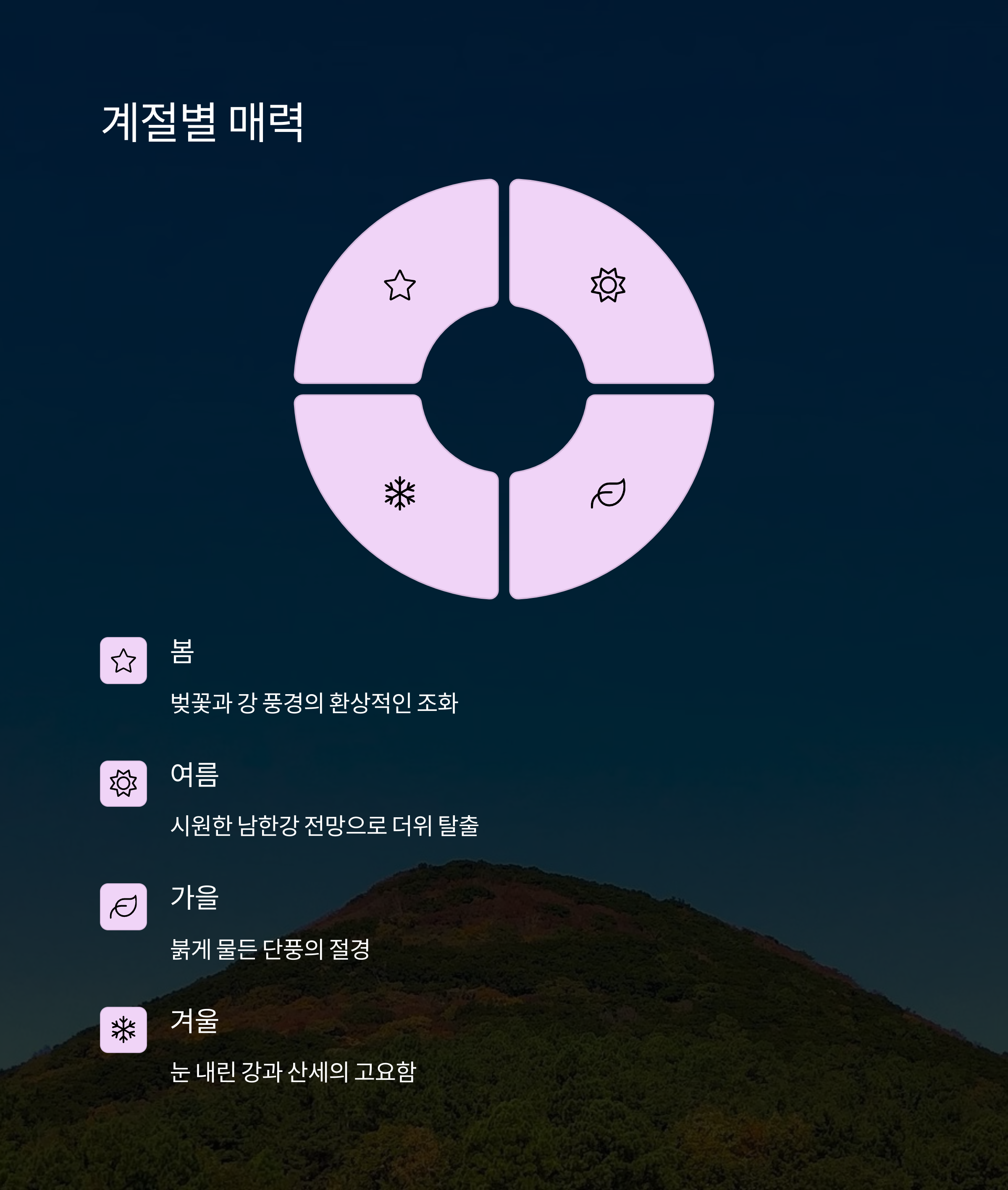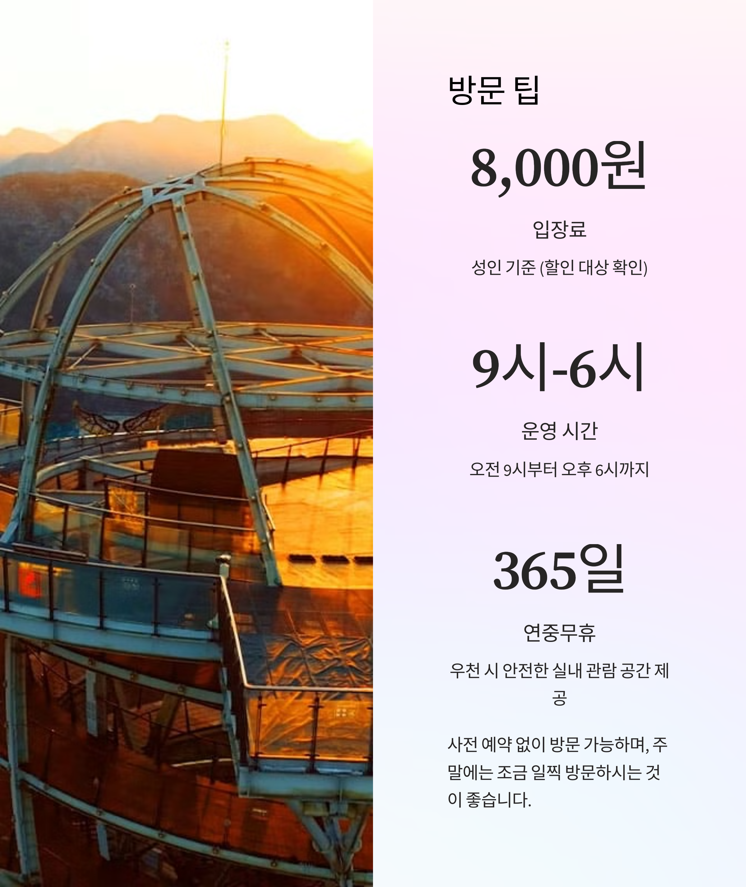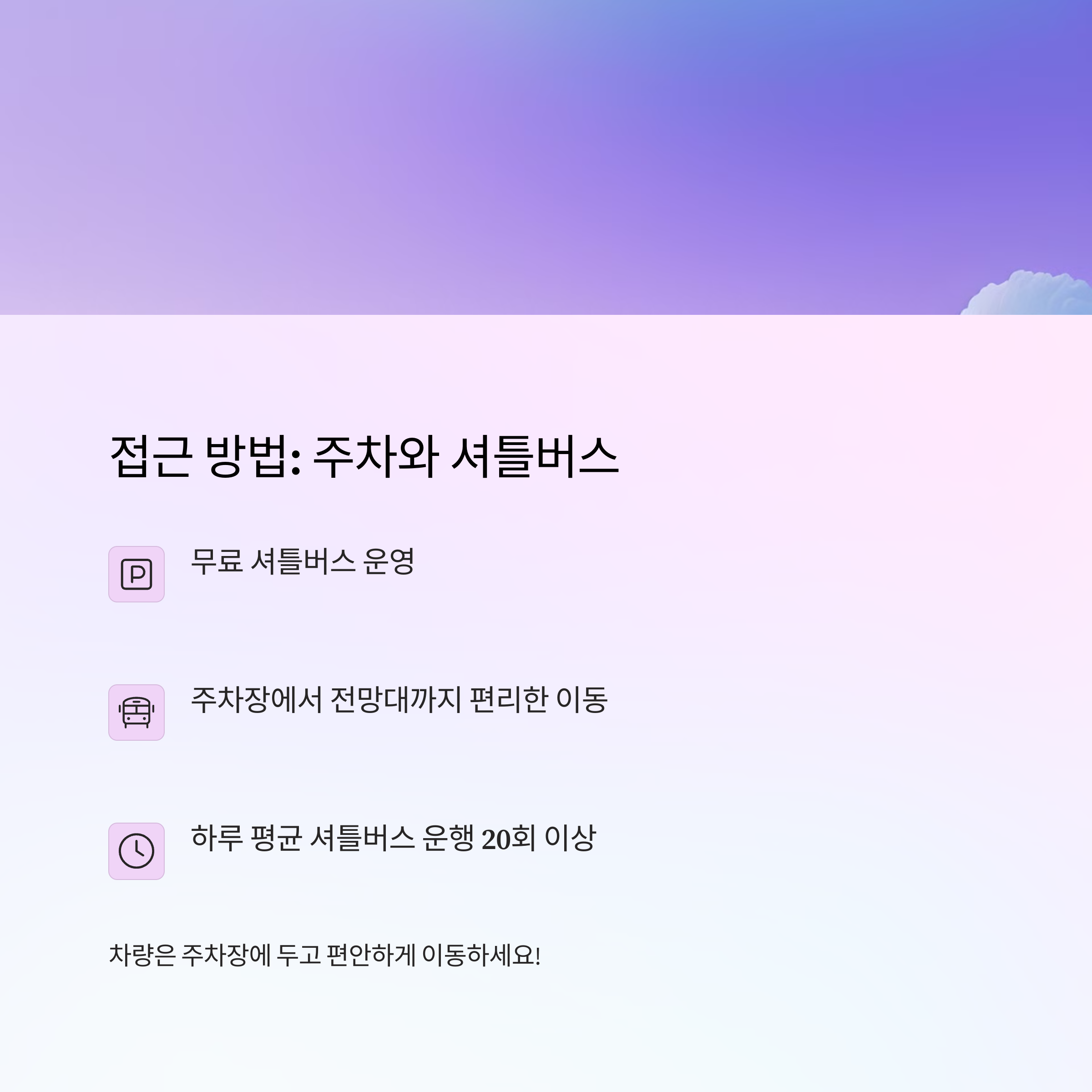 | 셔틀버스 | 주차장에서 출발, 무료 운영, 전망대까지 바로 연결 |