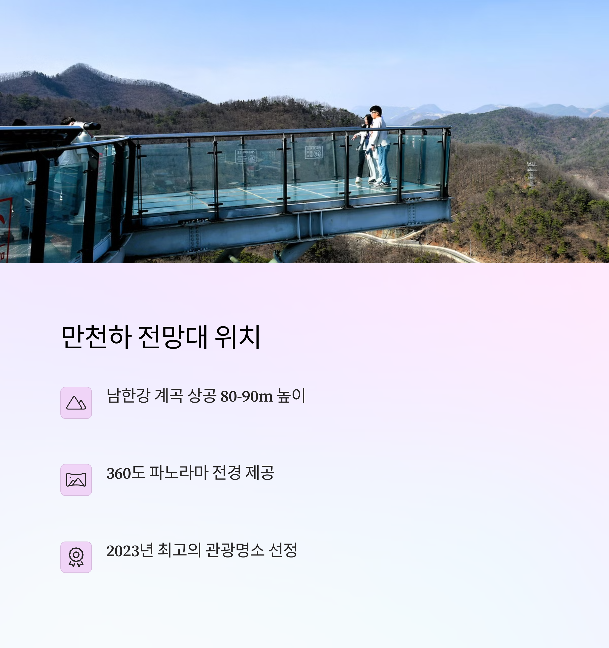 만천하 전망대에 다녀오신 적 있나요? 가장 좋았던 순간이나 팁이 있다면 댓글로 공유해주세요! 여행자끼리의 정보 공유가 누군가의 멋진 추억으로 이어질 수 있답니다 :)