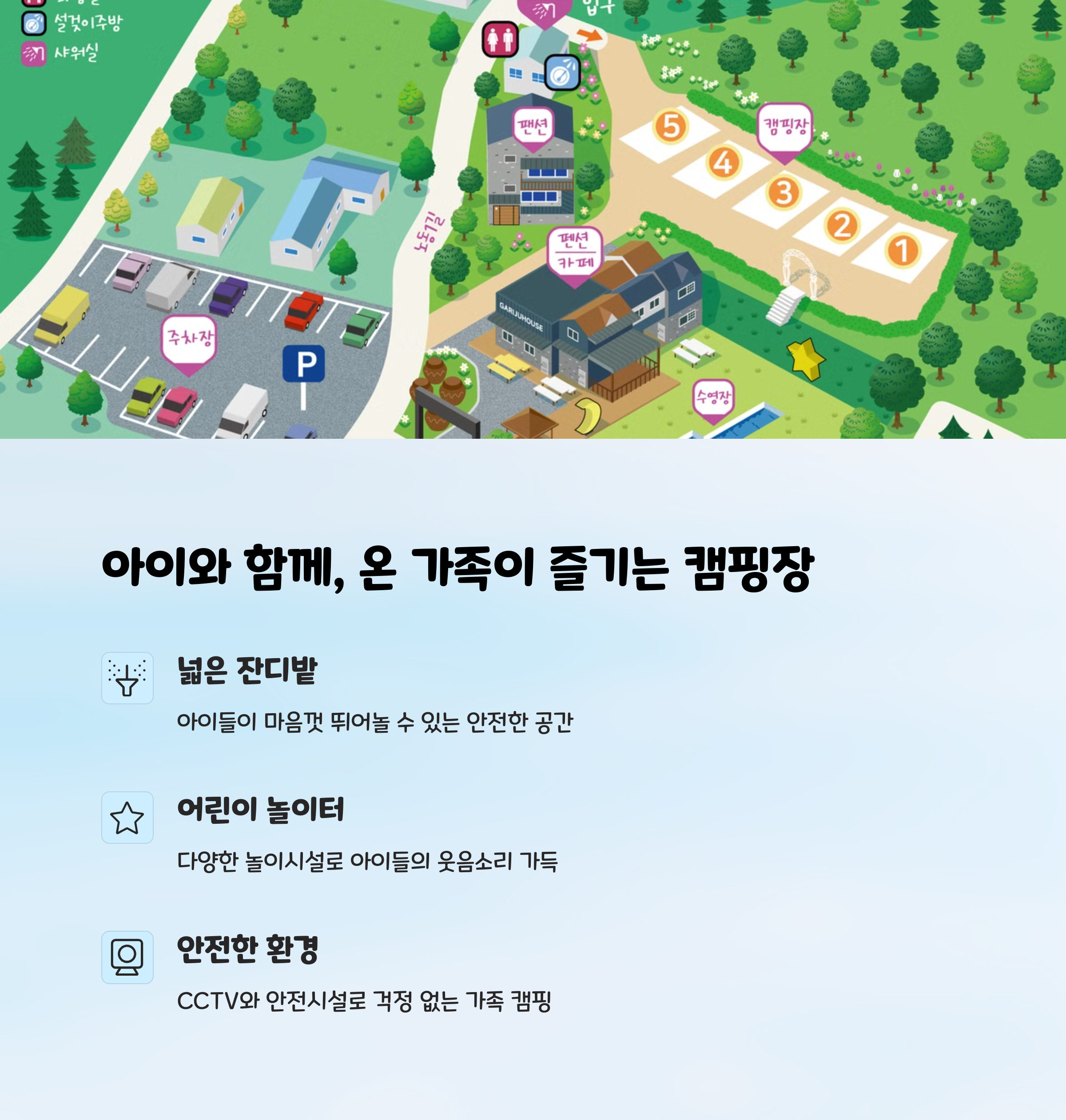| 온수샤워, 전기 있음 | 가족캠핑, 차박족 | 디아크전망대, 수변카페 |