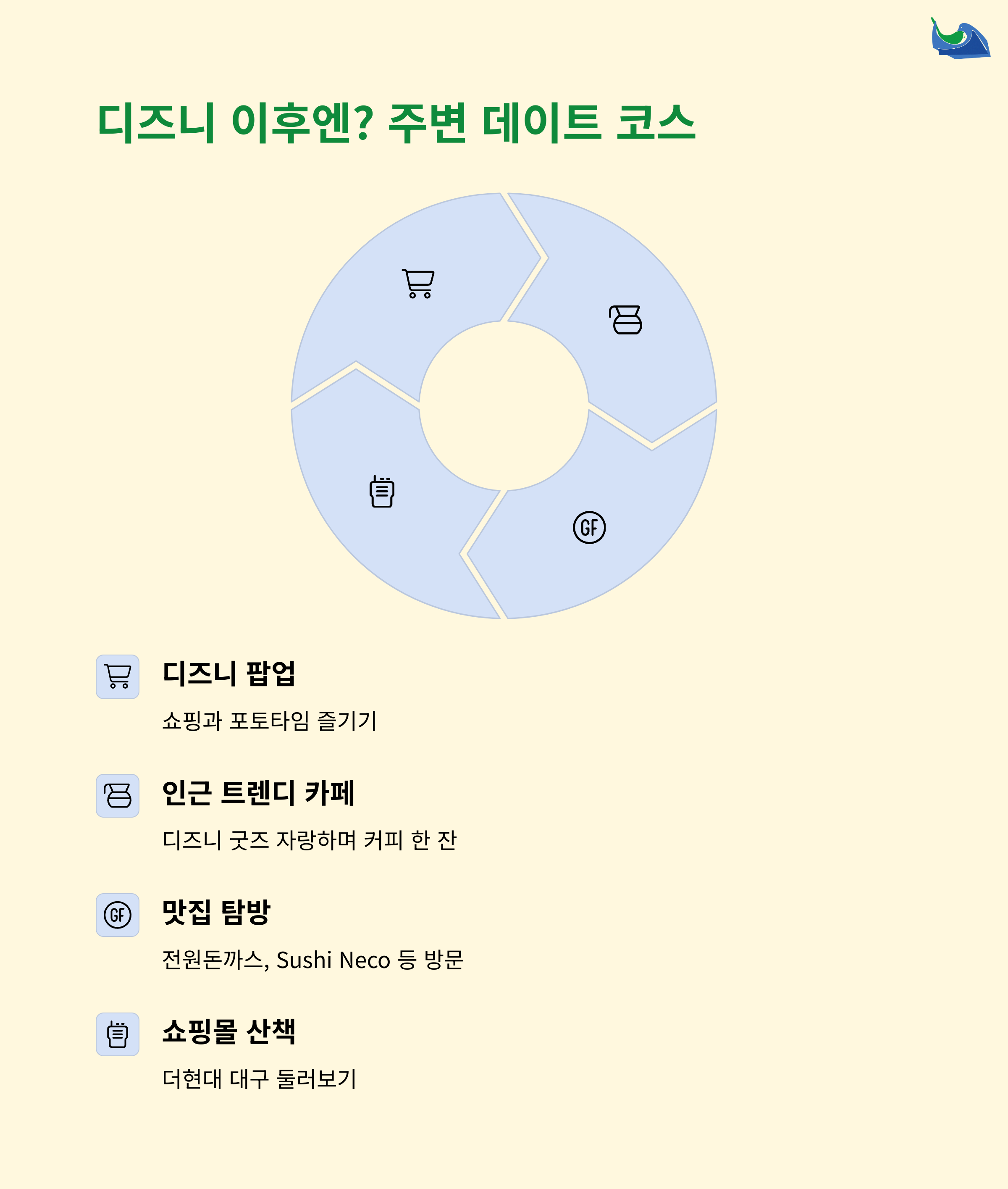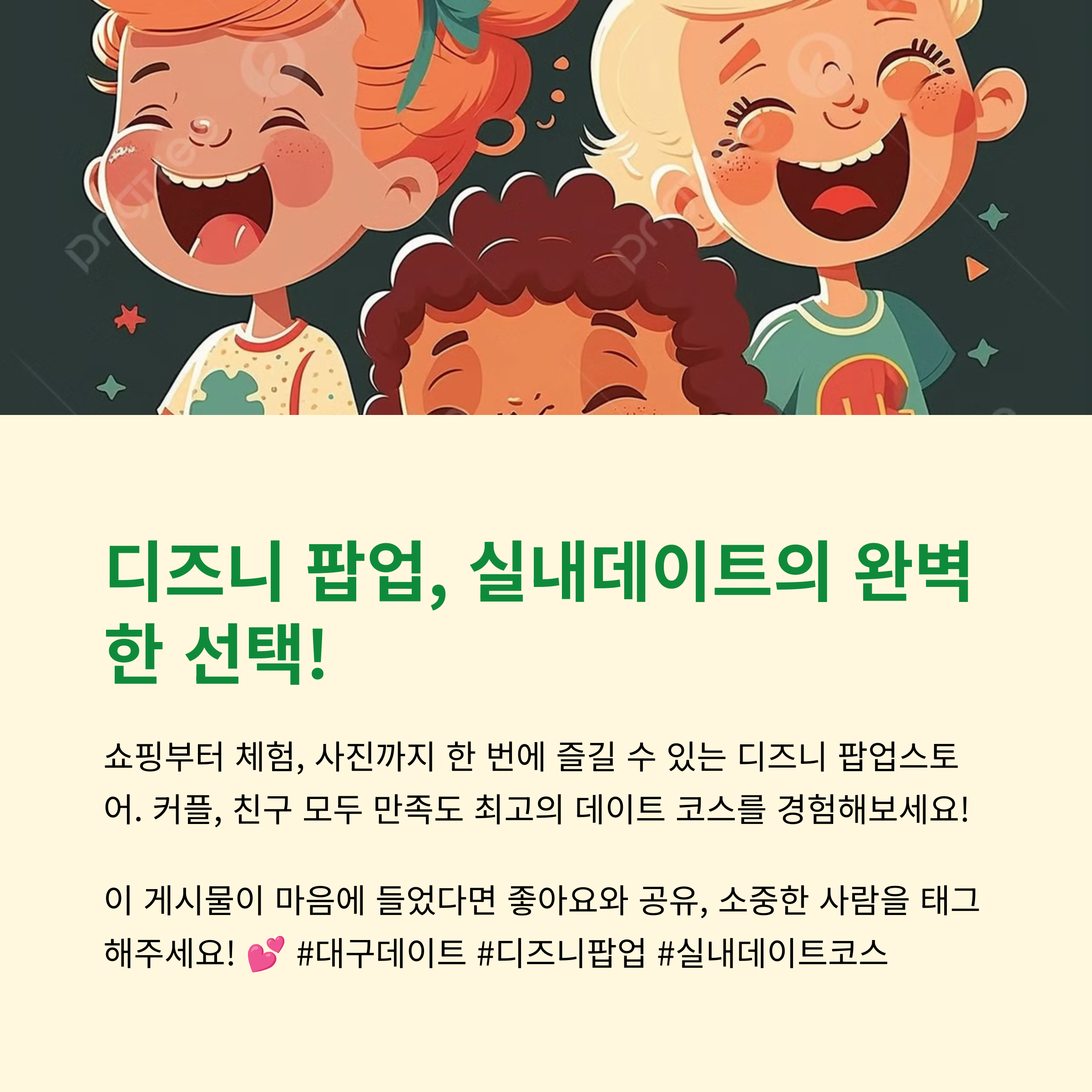 날씨 상관없이 실내에서 쾌적하게 즐길 수 있는 대구 디즈니스토어 팝업은 귀여운 굿즈, 감성 포토존, 쇼핑의 즐거움을 한 번에 누릴 수 있어 커플 데이트 코스로 딱 맞는 장소입니다. 알차게 꾸며진 공간 덕분에 시간 가는 줄 모르고 머물 수 있으며, 주변 맛집과 카페까지 더해진 완성도 높은 데이트 루트를 구성할 수 있습니다. 실내 데이트 장소를 찾고 있다면 이번 주말엔 디즈니스토어 팝업으로 감성 가득한 하루를 보내보세요!